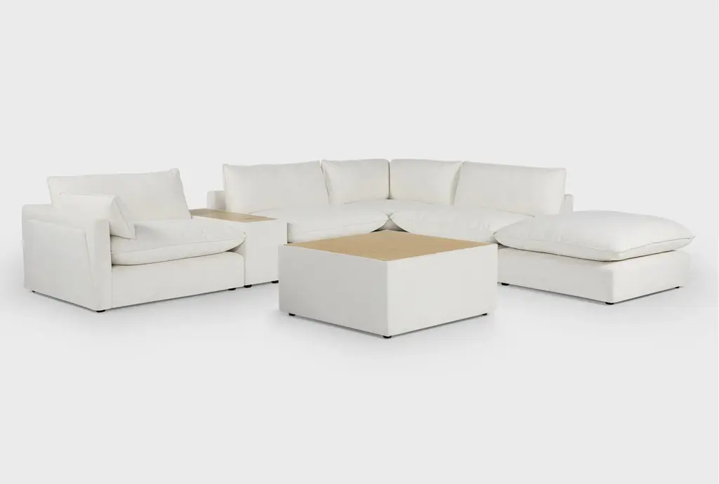 Get your lounging fix with our worthy Isabella sectional and ottoman, which provide quality comfort to match their tailored modern look. Wide and streamlined, generous track arms craft the modular sectional's clean silhouette, while loose and reversible cushions can be turned over and over for even wear and extended longevity. Made for and by Living Spaces, this exclusive offering comes in multiple colors.