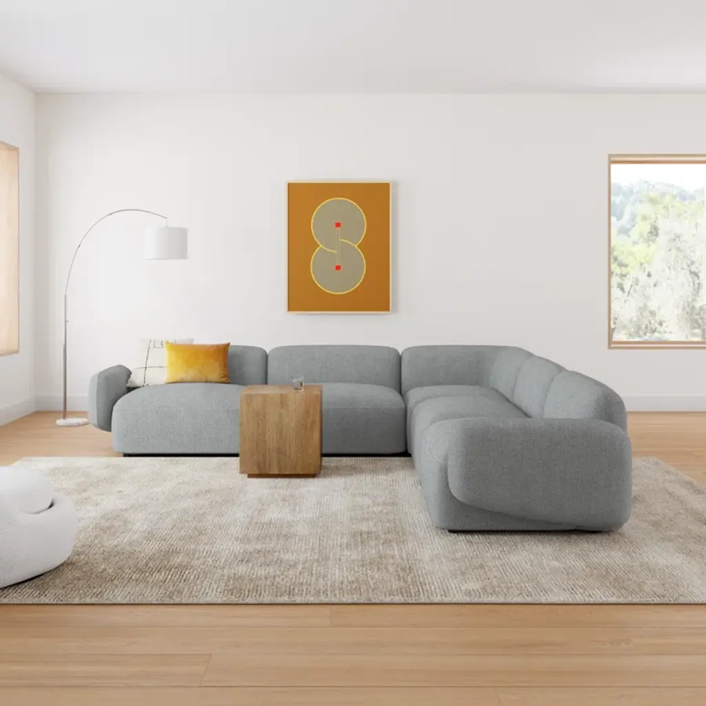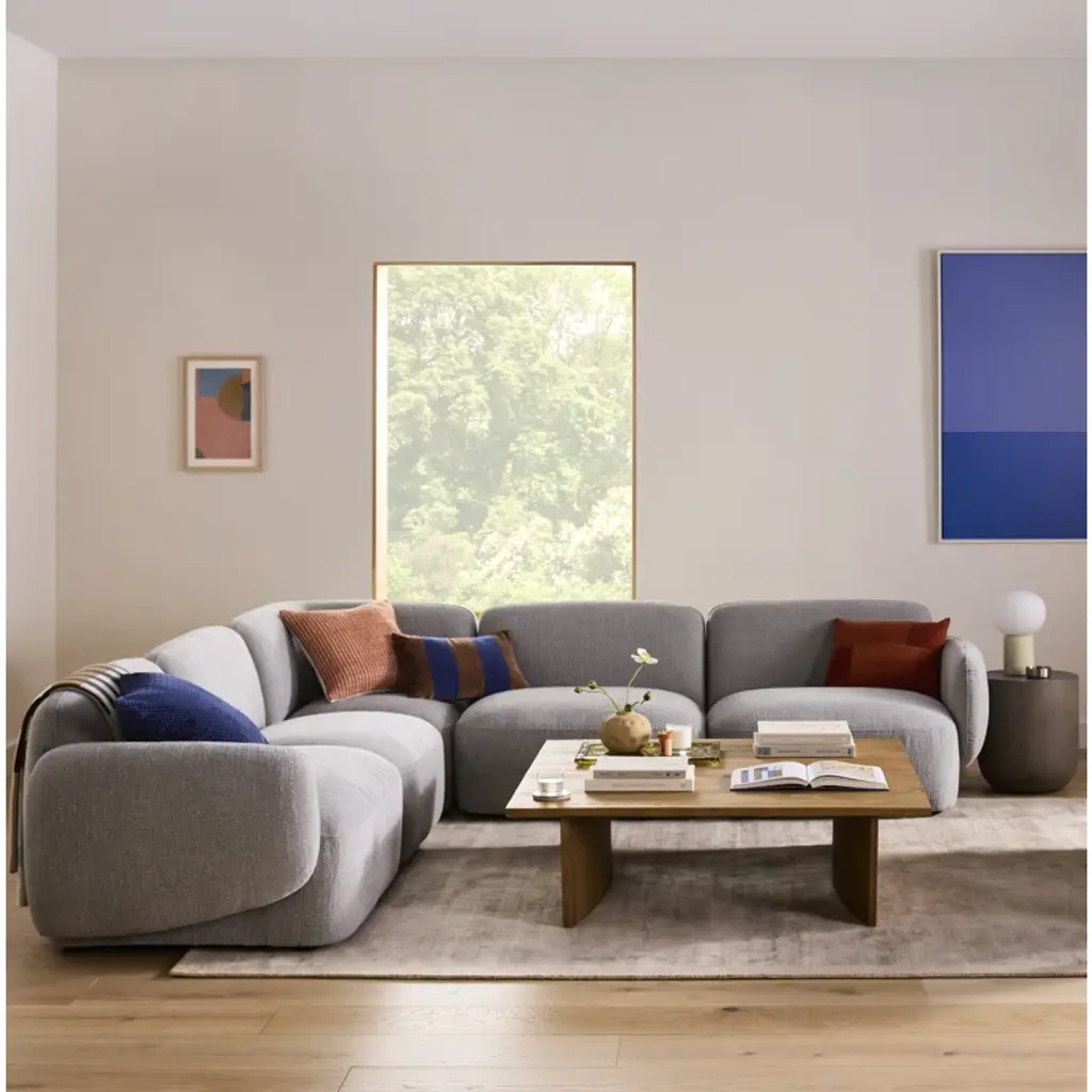 Artfully modular. This upholstered corner sectional is a transformative piece for your living room. Rounded edges, a low profile, and deep seats bring an inviting and ultramodern vibe to your space. The kiln-dried wood frame is wrapped in high-density fiber-wrapped foam and textured chenille for lots of support and comfort.