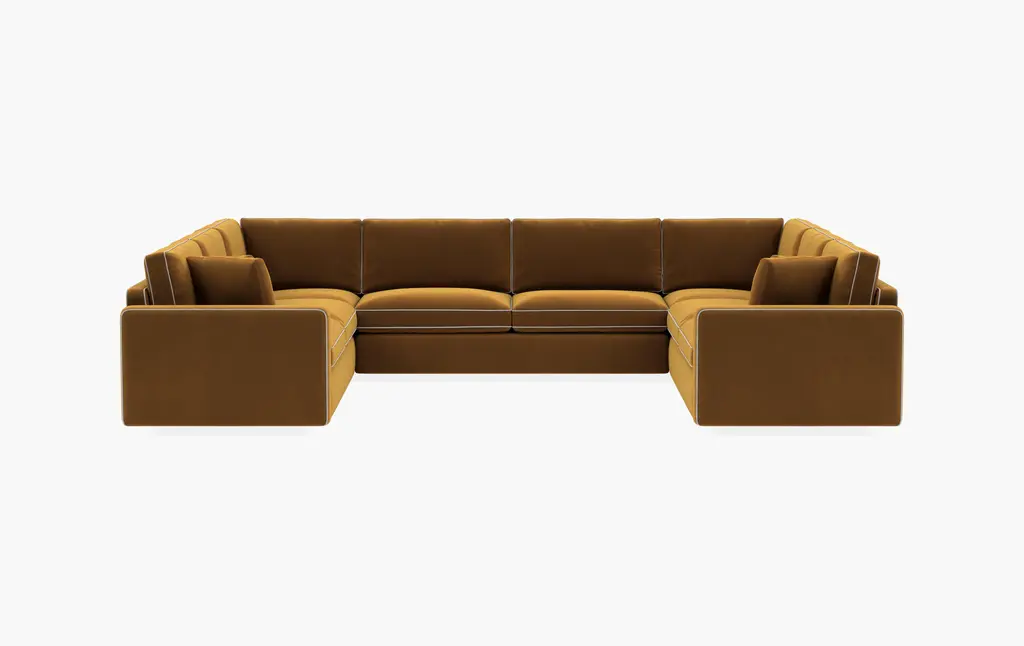James beautifully marries modern design with a transitional feel. Its to-the-floor platform and hidden legs are sleek, while subtle crowns in the seat and arms keep it soft. In keeping with its linear design, James' wide arms and back frame are finished with structural piping for a balanced look. Top it all off with cozy side cushions, and you have yourself the modern, lounge-ready sofa of your dreams. Contract grade.