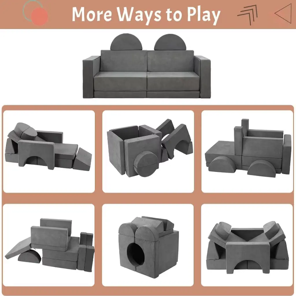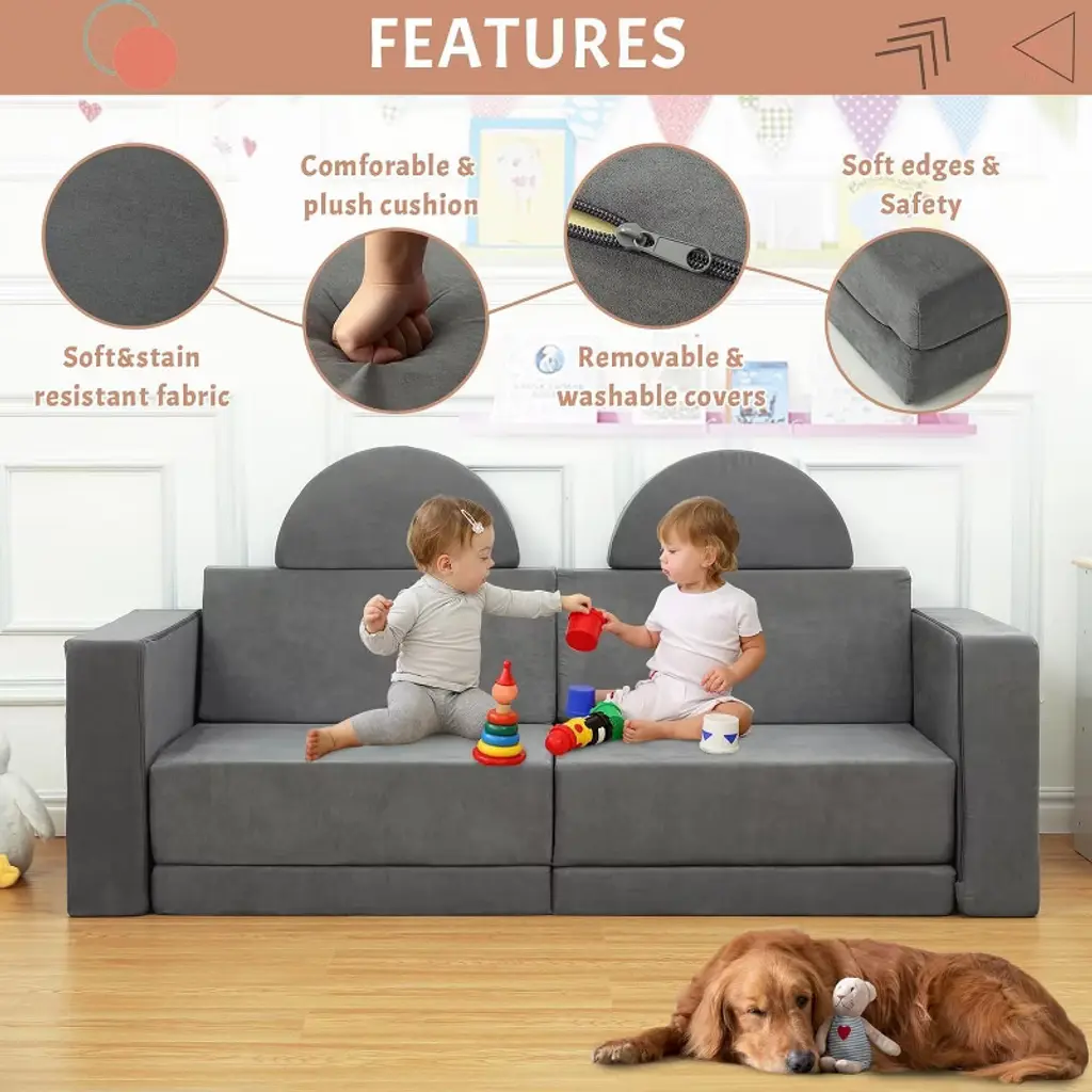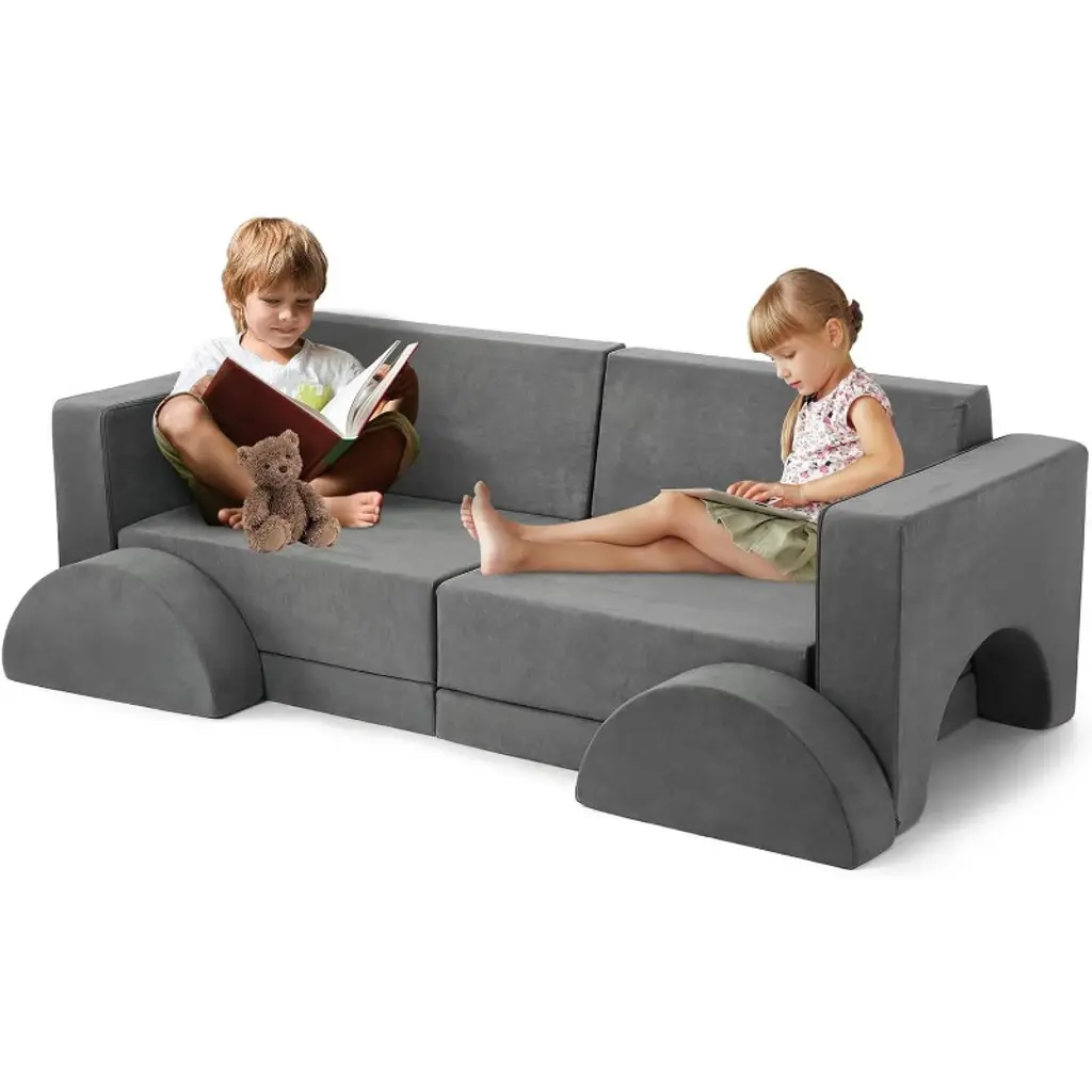 Jojoka 8-piece Soft Modular Kids Play Couch, Convertible Sofa For Toddlers, Fort Building Sectional Sofa For Playroom & Nursery, Grey