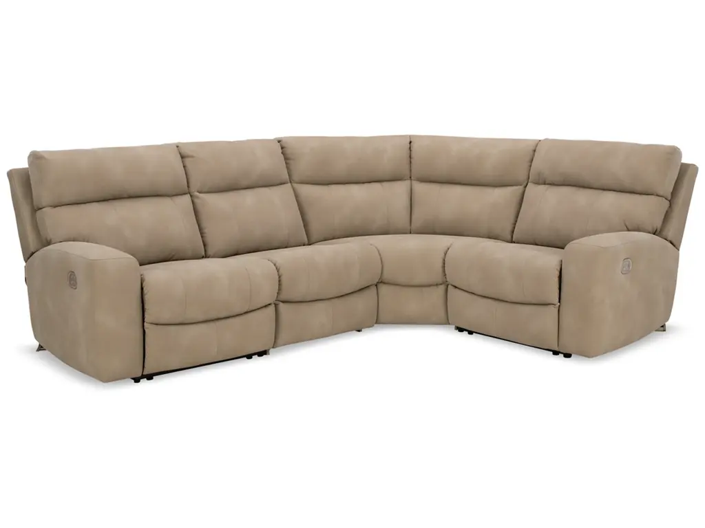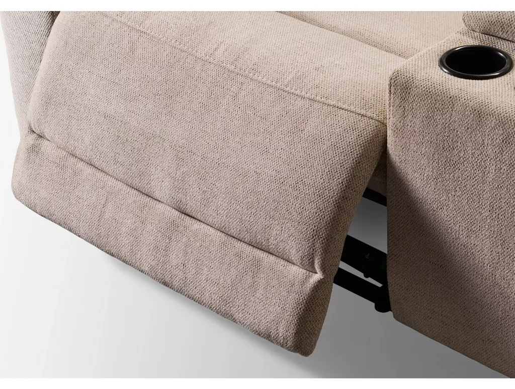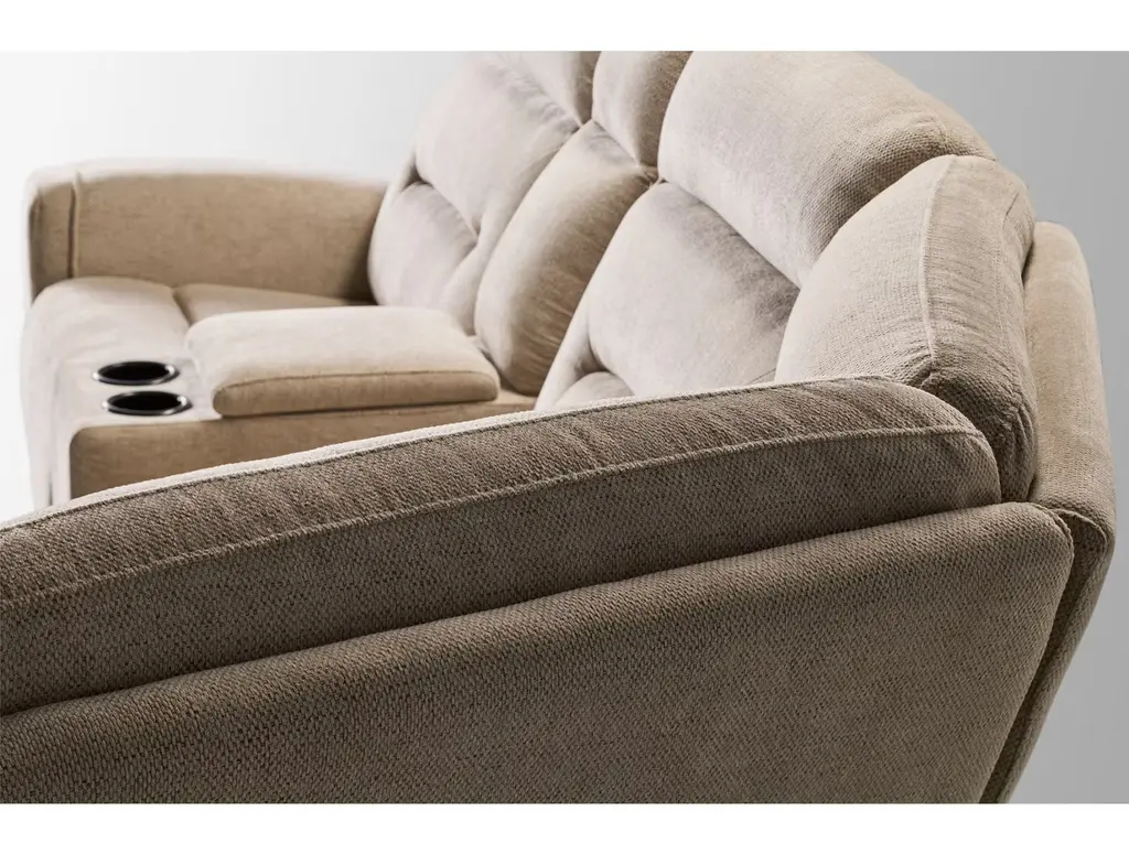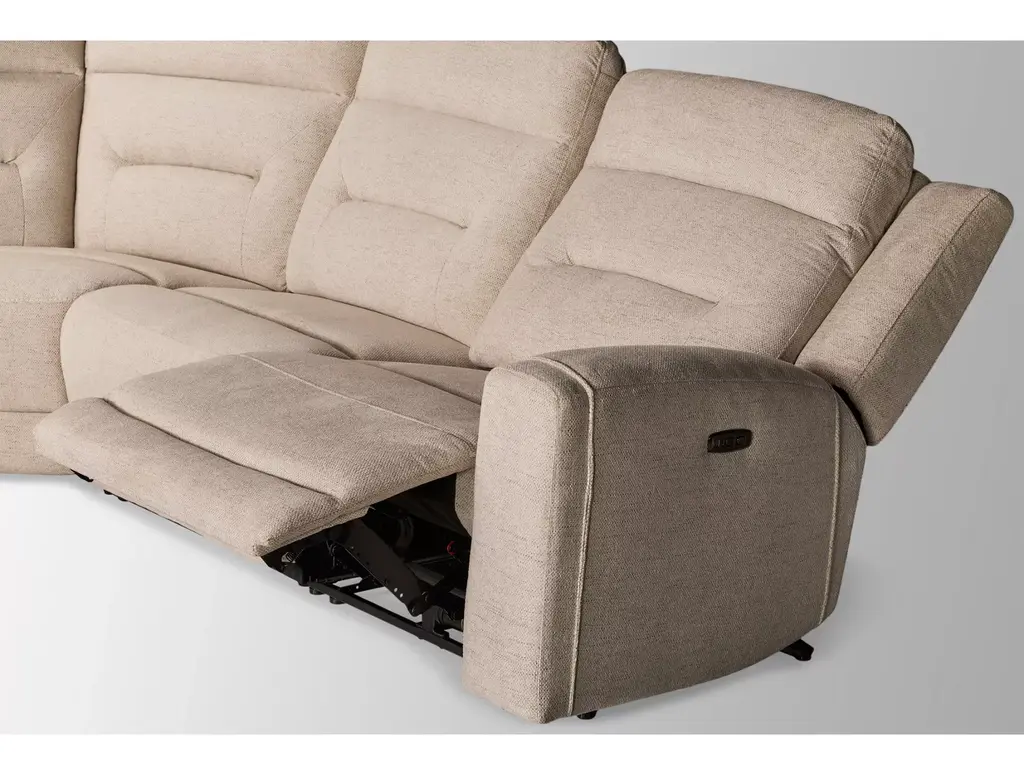 Relax in luxurious comfort with this Juno Power 6 Piece Reclining Sectional from Kuka Furniture. This contemporary-style sectional features three recliners, soft upholstery with track arms, and tufted backs and footrests. View your favorite programs sitting upright or recline and take a nap at the touch of a button. A convenient USB port lets you charge your electronic device while you recline. The console includes a convenient storage compartment and two cup holders.