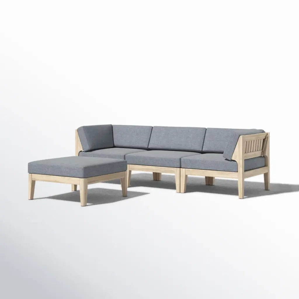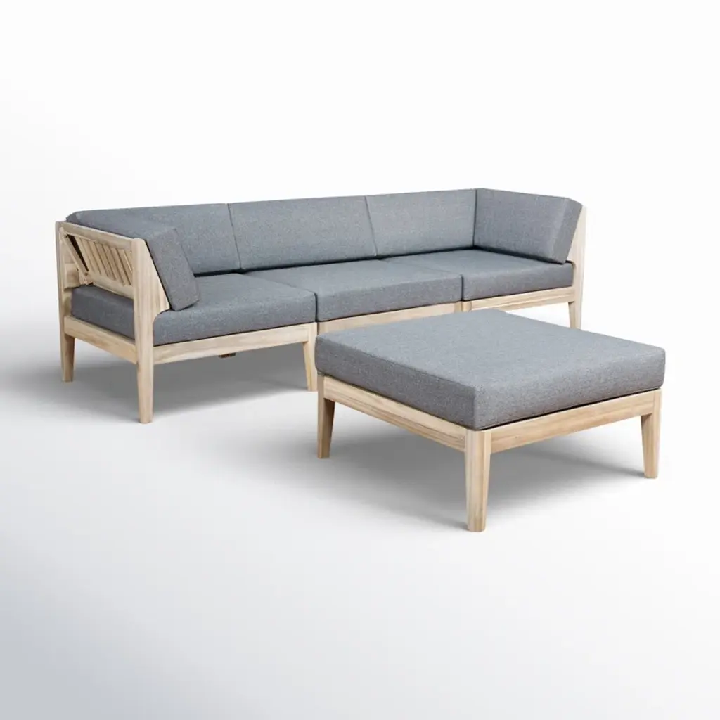 Modular, use alone, in pairs, or with matching corner and ottoman pieces to create your own oasis sofa sectional. Luxurious contemporary styling provides comfort inside as well as outside on your patio. Acacia wood coordinates with a performance fabric cushion that comfortably stand up to the weather.