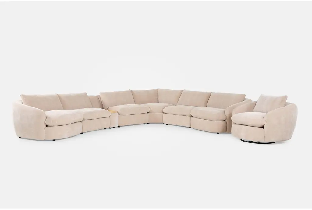 Kendall 138" Sand Beige Cloud-Like 5 Piece Curved L-Shaped Modular Sectional & Swivel Cuddler | Reversible | Fabric