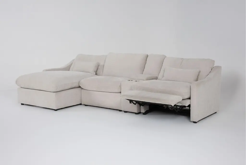 Kennedy Cream 4 Piece Power Reclining Modular Sectional With Left Arm Facing Power Chaise