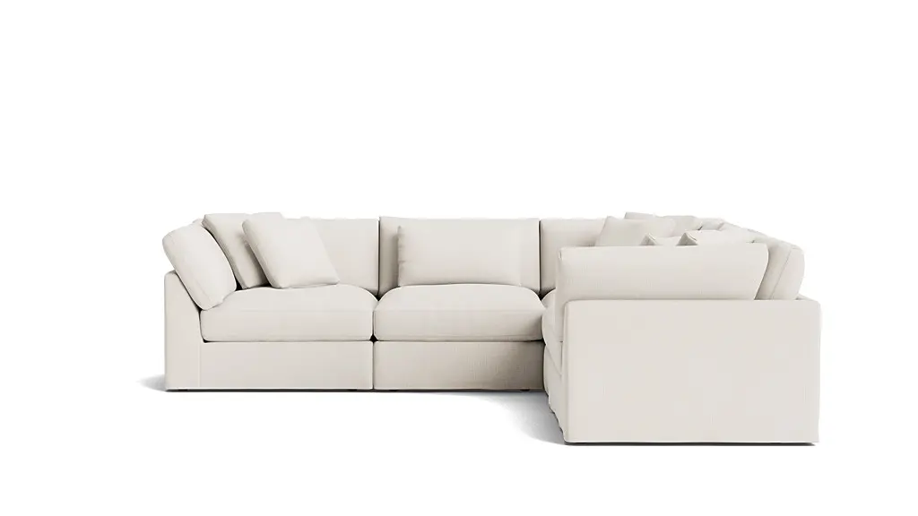 Kennedy Cream Beige Ivory 134" 6 Piece L-Shaped Modular Sectional | Console Storage Cupholders | Usb | Reversible | Fabric