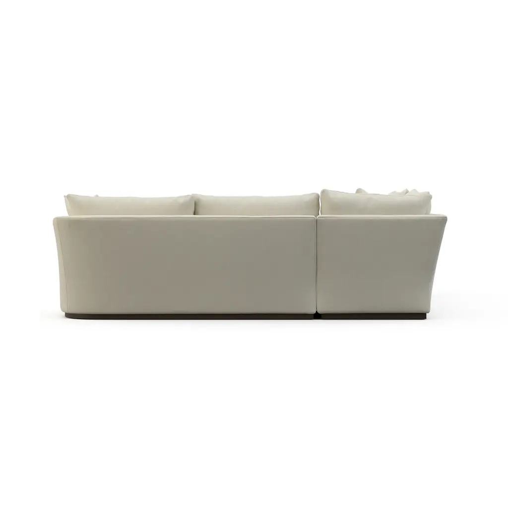 The Kira 2 Piece Sectional is a corner sofa with ample seating for five or more. It's gently sloping arms and unique wooden plinth base give it substance while also ensuring the space feels open and inviting. Ships In 8-10 Weeks Six loose back pillows Five loose seat cushions As Shown Fabric: Rayburn Oatmeal, Lynnwood White (lifestyle) As Shown Finish: Antique Walnut If you choose to purchase COM, once you have placed your order a customer service rep will contact you regarding where to send your fabric. Please note that current lead time is 17-19 weeks once your fabric arrives at the factory, and if unused fabric is under 1.5 yards, it cannot be sent back to you.This product can be special ordered in additional fabrics, leathers, finishes, and cushion fillings. Click here to email us for for additional information about special ordering.This image is for illustrative purposes only. The colors shown are accurate within the constraints of lighting, photography, and the color accuracy of your screen.