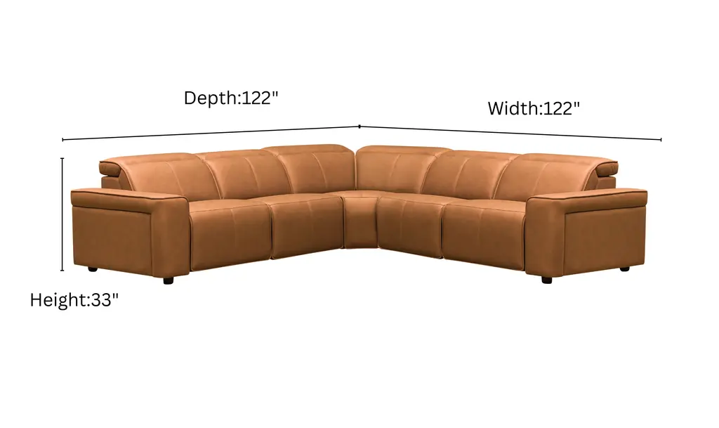 A focal point for your living area is the Leonardo 6-Piece Power Recliner Sectional. This sectional radiates comfort and elegance thanks to its soft foam padding and opulent Italian Leather upholstery. The power reclining seats, footrest, and headrest offer the utmost in comfort, while the deep stitching adds a touch of sophistication. The Leonardo sectional, designed with a contemporary Italian flair, has a whole top made of stone-wash, series Leather for a sleek appearance. Years of durability and attractiveness are guaranteed by the upholstery made entirely of Italian Leather This sectional offers velvety comfort and support thanks to its down-filled cushions. With the Leonardo sectional's complete wrapping and all-encompassing backrest and armrests, you may feel the pinnacle of comfort. The padded seats fit perfectly, and the integrated USB port enables.Features hidden storage on both sides, complete with phone holders.Arm-end consoles include storage space and dedicated phone slots