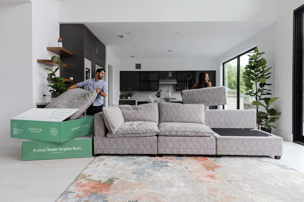 Come home to the world's most comfortable sofa. Kova’s feather blend seat cushions provide cloud-soft comfort for sink-in lounging. Combine Kova’s modular pieces to create endless configurations to fit your space and your lifestyle. Arrives quickly in easy-to-move boxes intentionally designed to maneuver through tight spaces. Assembles easily without any tools.