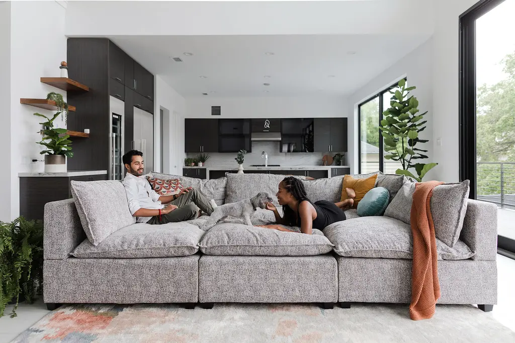Come home to the world's most comfortable sofa. Kova’s feather blend seat cushions provide cloud-soft comfort. Combine Kova’s modular pieces to create endless configurations to fit your space and your lifestyle. Arrives quickly in easy-to-move boxes intentionally designed to maneuver through tight spaces. Assembles easily without any tools.