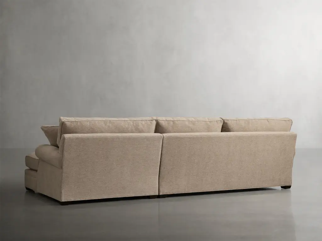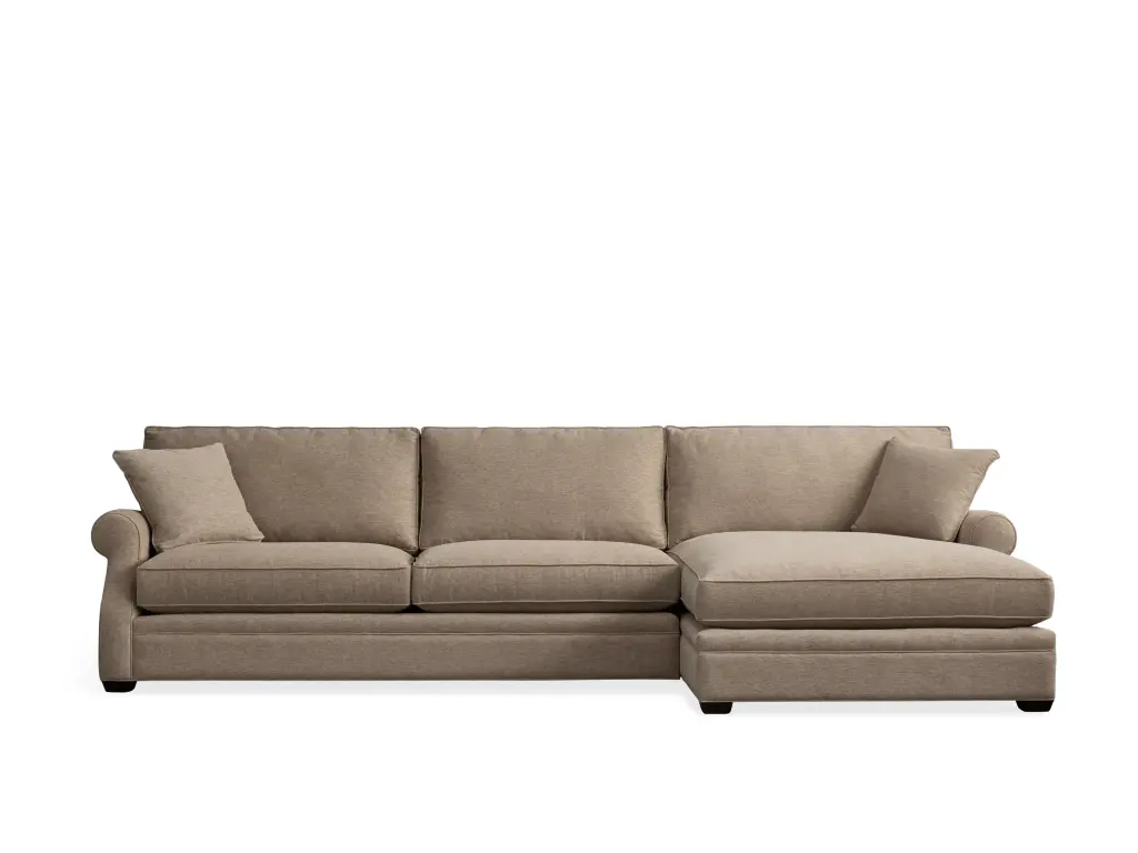 Our Landsbury Sectional Collection fits living rooms both spacious and small. This transitional style features plush, padded cushions, rolled arms, and an abundance of toss pillows—resulting in a versatile foundation for your seating area. Hand-built by dedicated upholstery artisans in North Carolina, these pieces are durably constructed with sustainably sourced hardwoods. Deep and cozy cushions provide long-lasting support and a “sink into” feel.