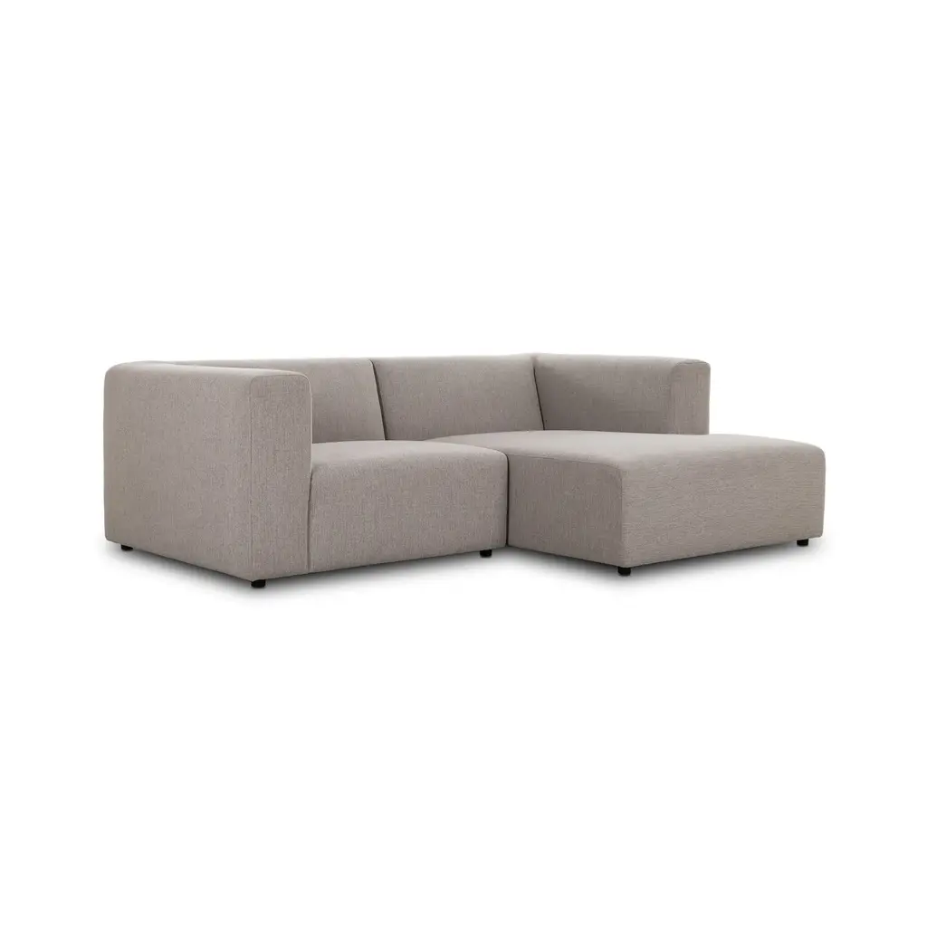 The Lawndale 2-Piece Sectional from Four Hands perfectly balances clean, modern lines with a substantial, inviting form. Its thick construction and smooth, tight upholstery create a look of tailored sophistication, while providing an exceptionally comfortable sit for the whole family. Designed for real life, this spacious sectional is an ideal centerpiece for a contemporary living space, offering both enduring style and a welcoming place for family and friends to gather and relax. Highlights: