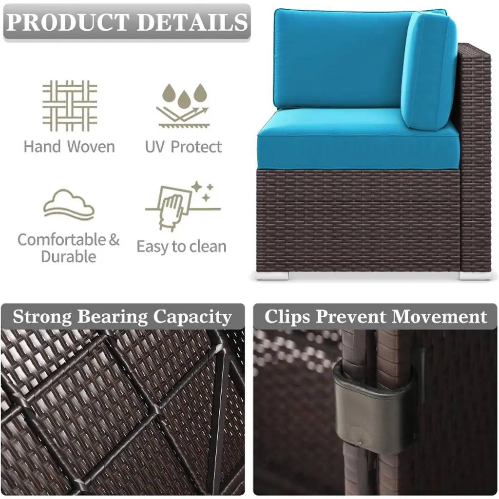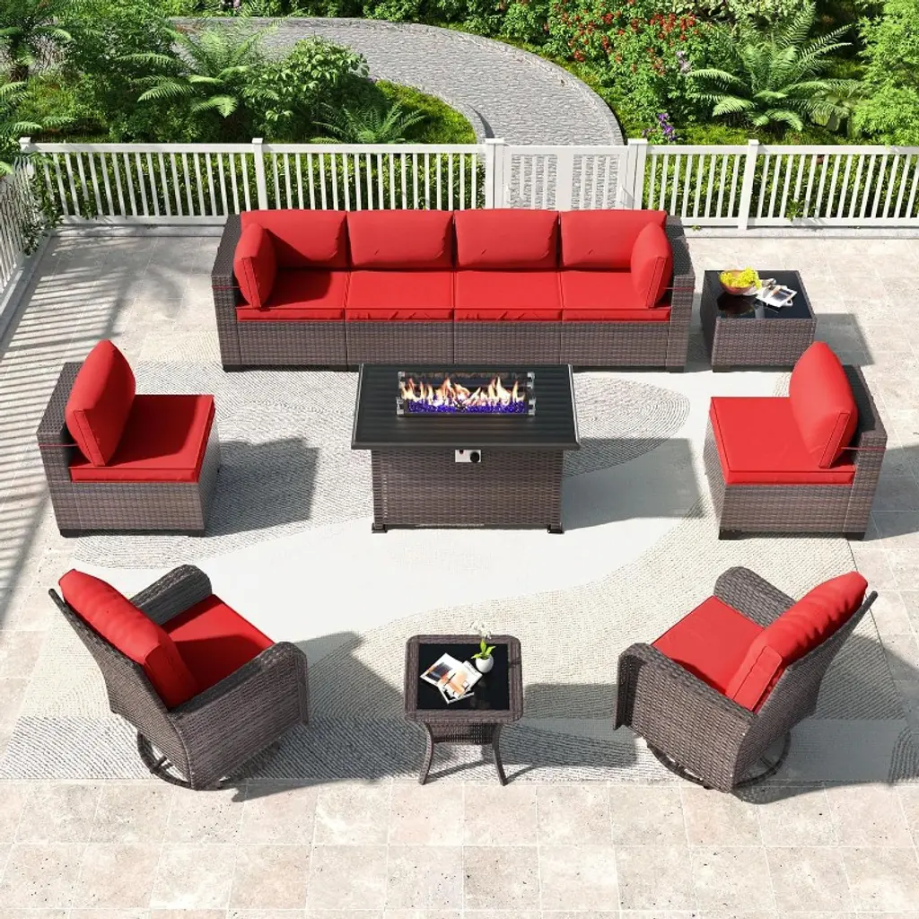 Layinsun 15 Piece Patio Furniture Set With Fire Pit Table, Outdoor Conversation Sets Wicker Rattan Sectional Sofa With Coffee Table
