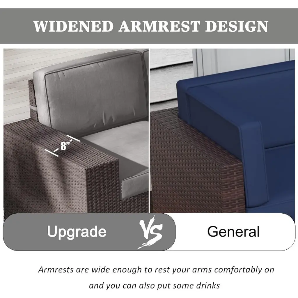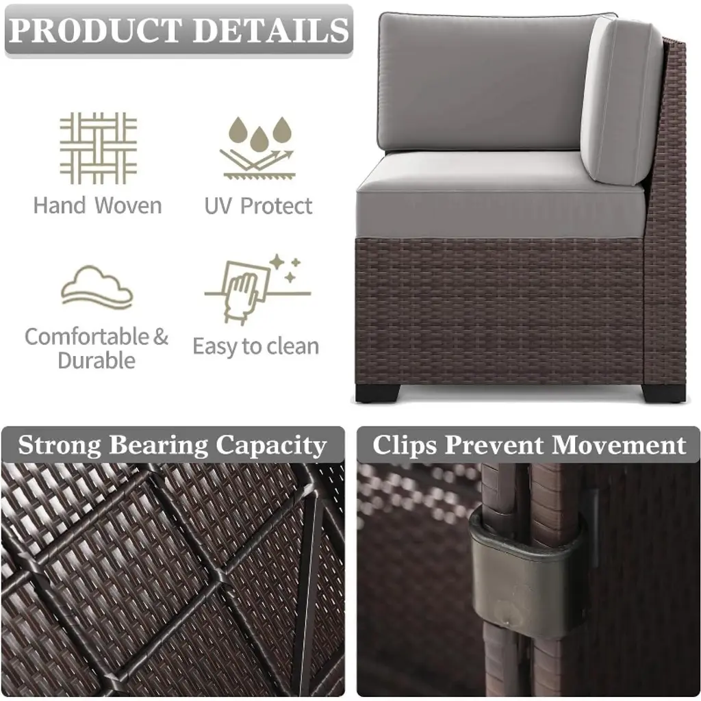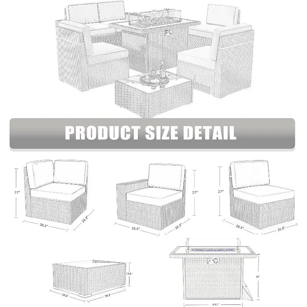 Layinsun 7 Pieces Outdoor Patio Furniture Set With 44" Fire Pit Table Brown Rattan Sectional Sofa Conversation Sets