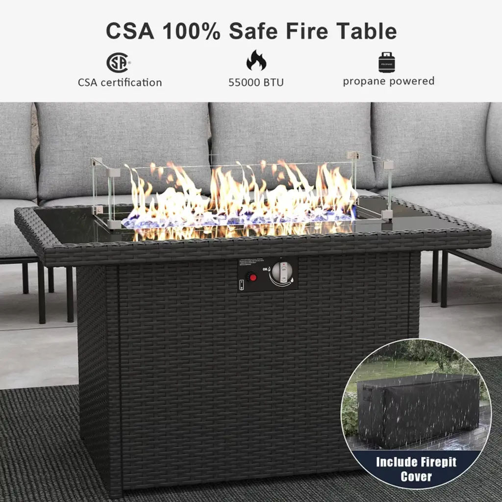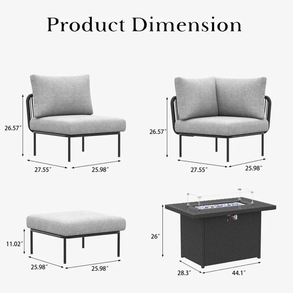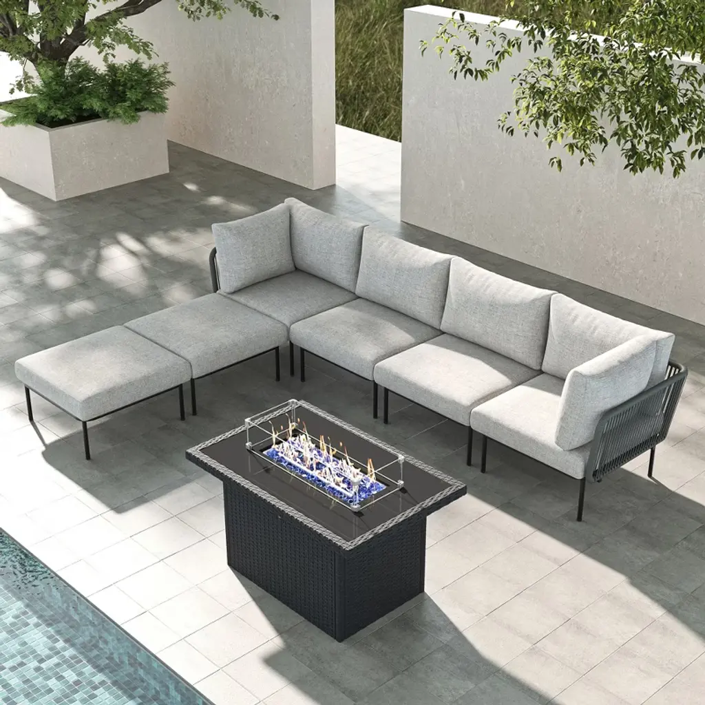 Layinsun 7 Pieces Rope Woven Patio Furniture Set, Modern Modular Sectional Sofa With Fire Pit Table And Upgrade Thickness Cushion
