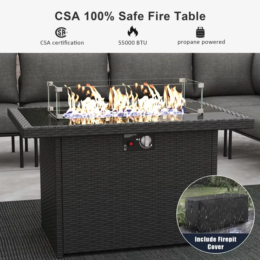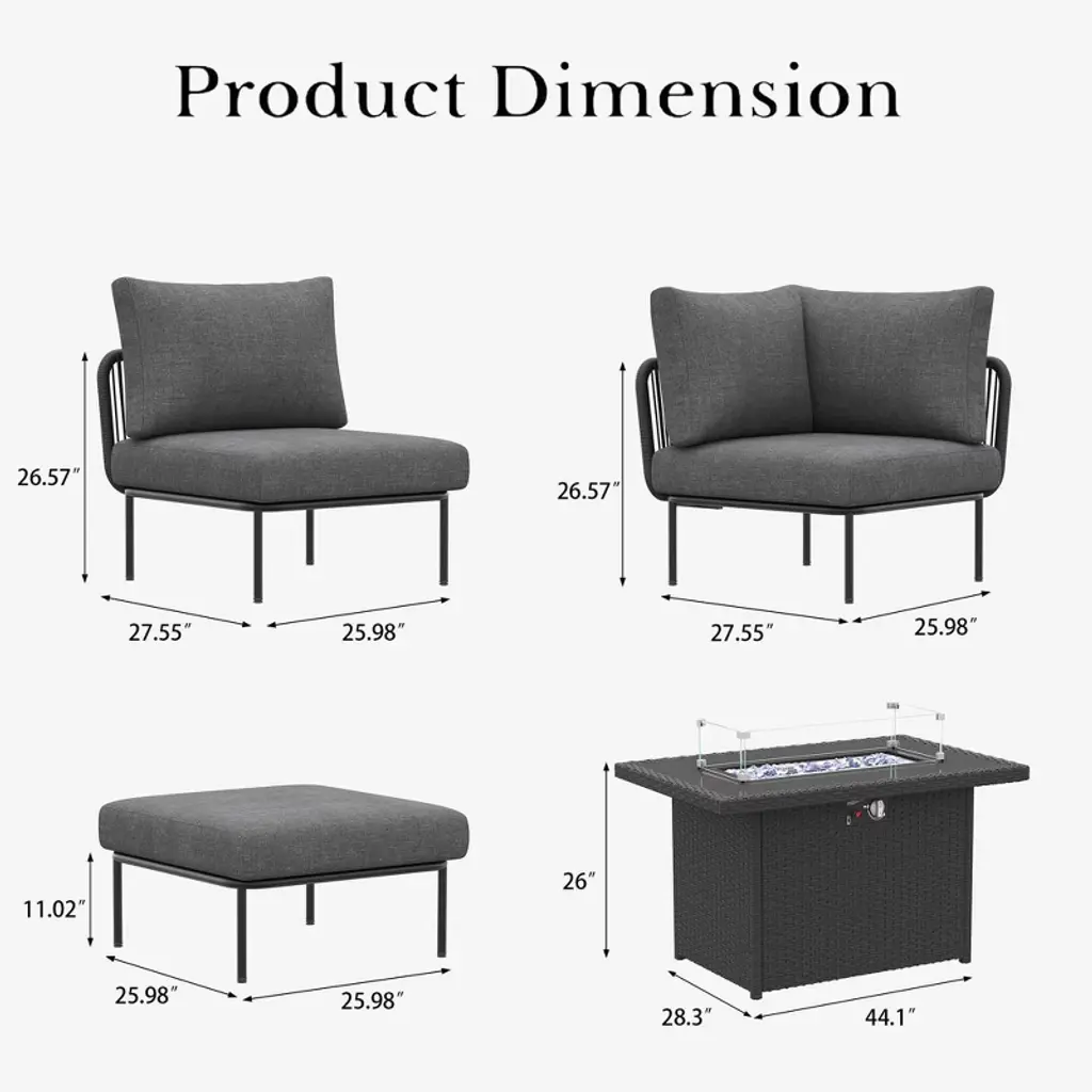 Layinsun 7 Pieces Rope Woven Patio Furniture Set, Modern Modular Sectional Sofa With Fire Pit Table And Upgrade Thickness Cushion