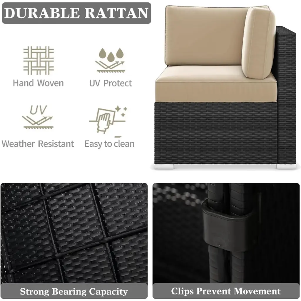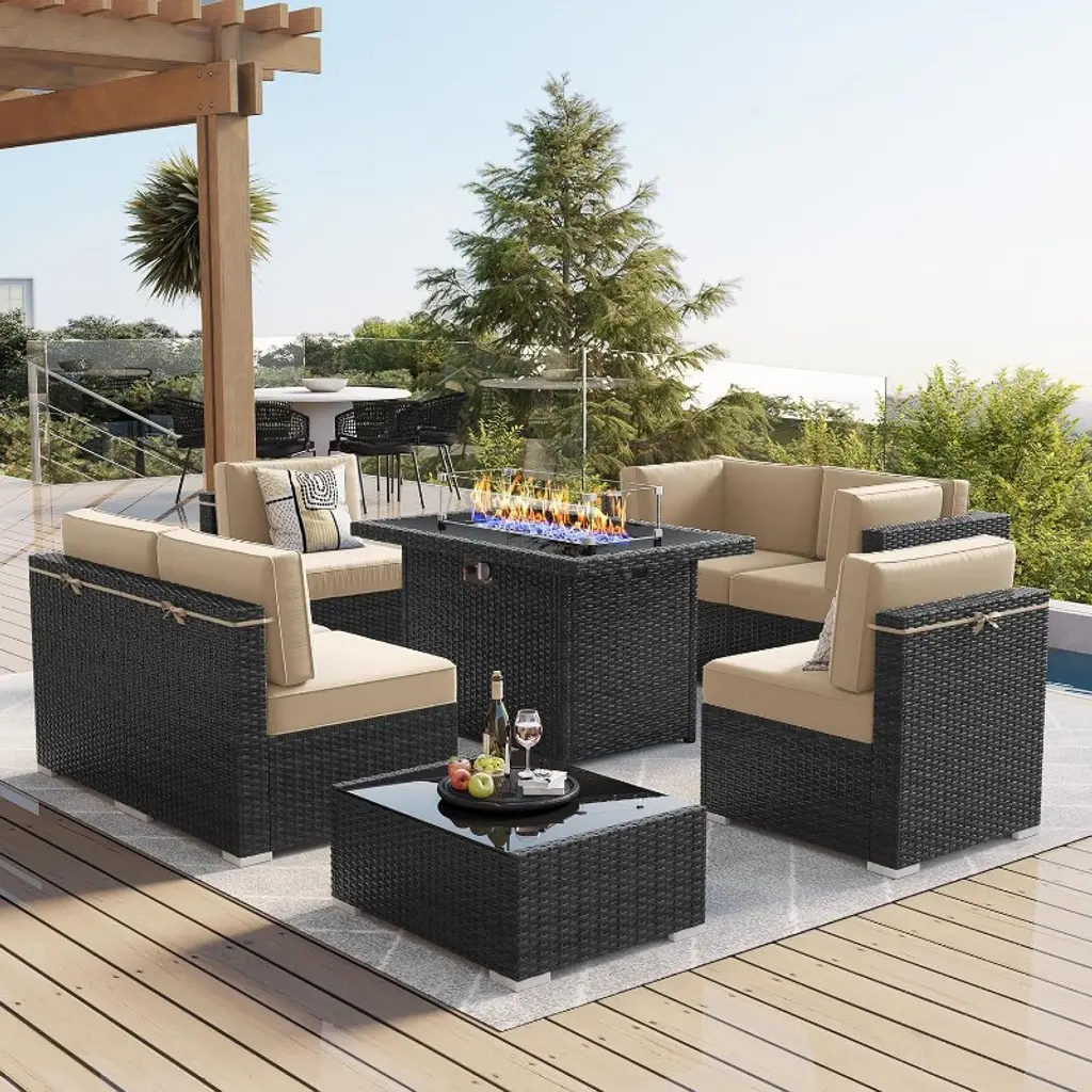 Layinsun 8 Piece Patio Furniture Set With 44" Propane Gas Fire Pit Table, Outdoor Sectional Conversation Set Wicker Rattan Sofa Set