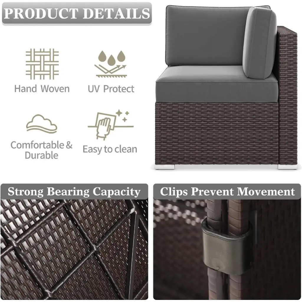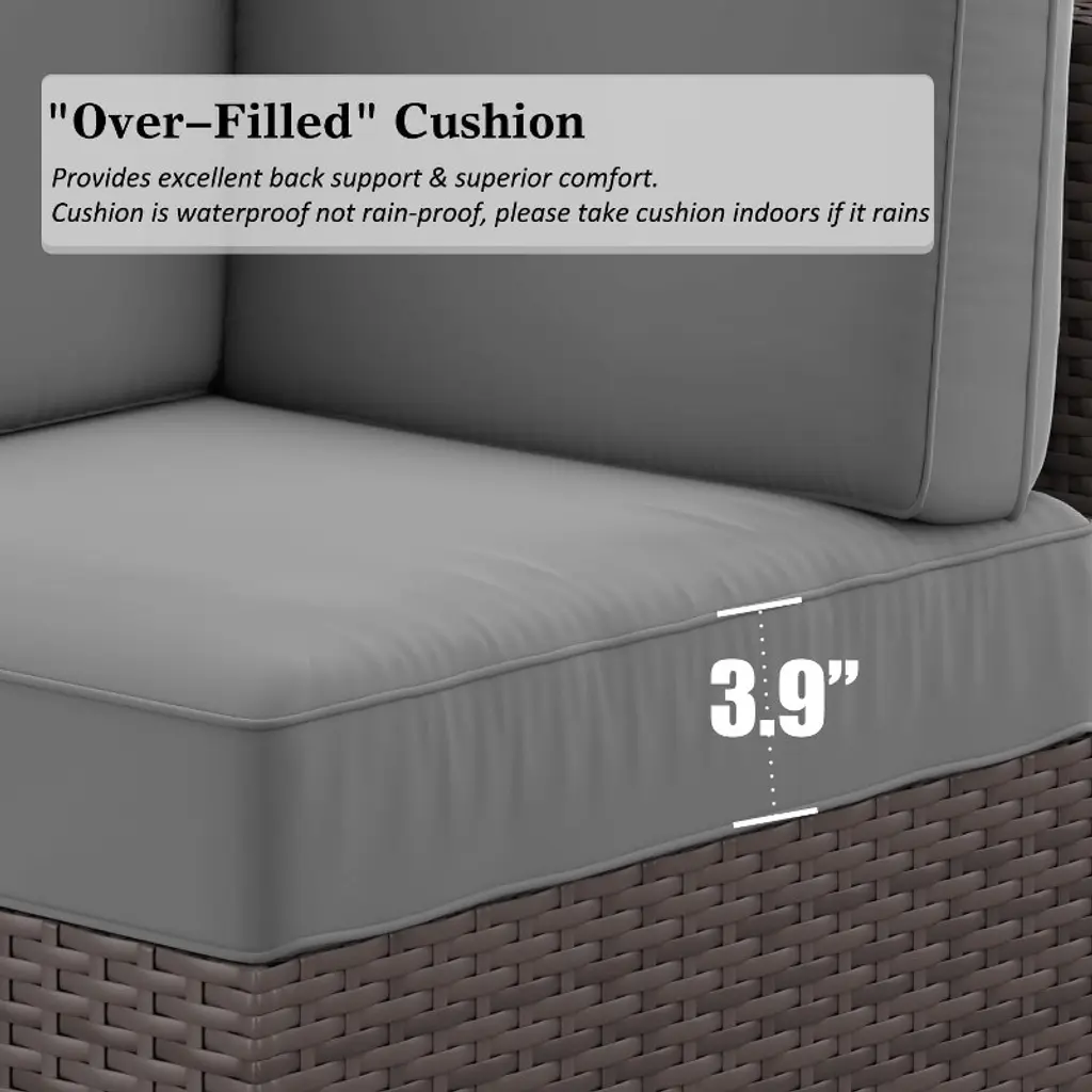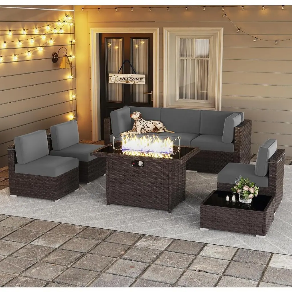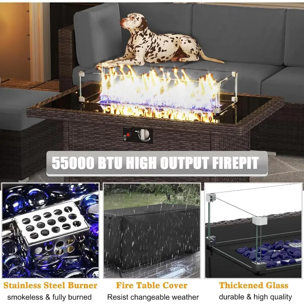 Layinsun 8 Piece Patio Furniture Set With 44" Propane Gas Fire Pit Table, Outdoor Sectional Conversation Set Wicker Rattan Sofa Set