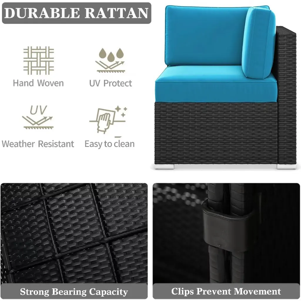 Layinsun 8 Piece Patio Furniture Set With 44" Propane Gas Fire Pit Table, Outdoor Sectional Conversation Set Wicker Rattan Sofa Set
