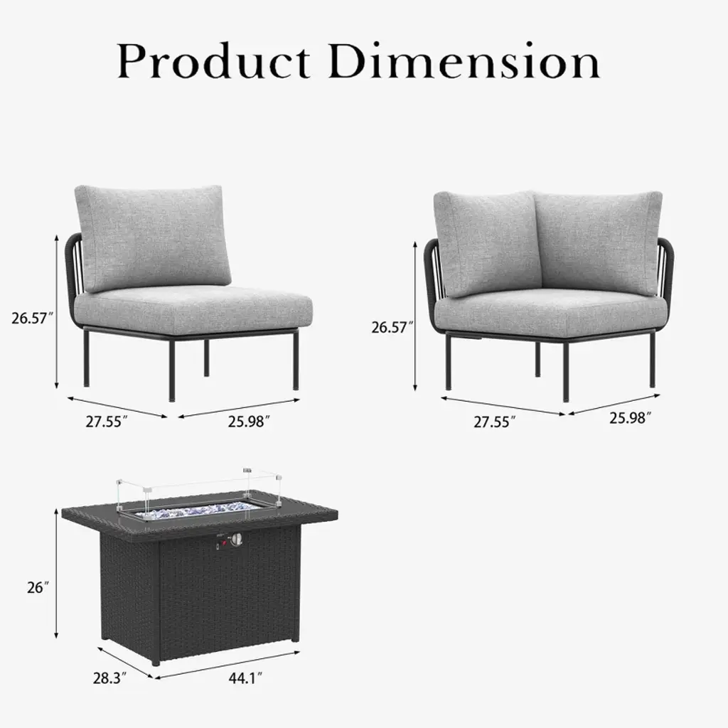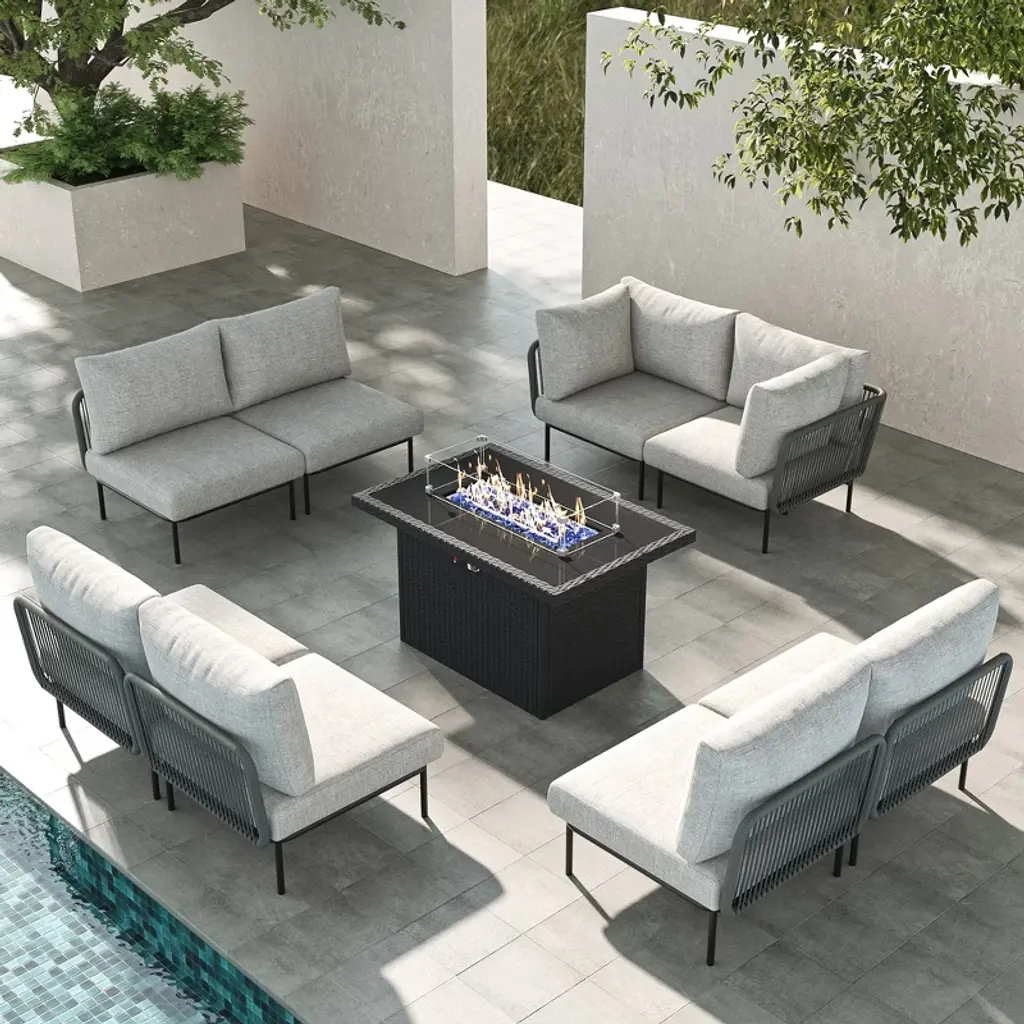 Layinsun 9 Pieces Rope Woven Patio Furniture Set, Modern Modular Sectional Sofa With Fire Pit Table And Upgrade Thickness Cushion