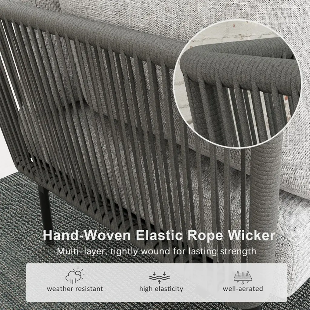 Embrace modern minimalist charm with timeless design, blending casual elegance and effortless comfort. outdoor furniture set crafted from durable natural wicker rope and sturdy aluminum frame. The olefin fabric is waterproof and UV-resistant ensuring sofa remains stylish and flexible in any climate. Fluffy and thick cushion, as soft as clouds, to give you the most intimate care. Enjoy this distinctive outdoor furniture collection, which will give your patio an exquisite transformation.