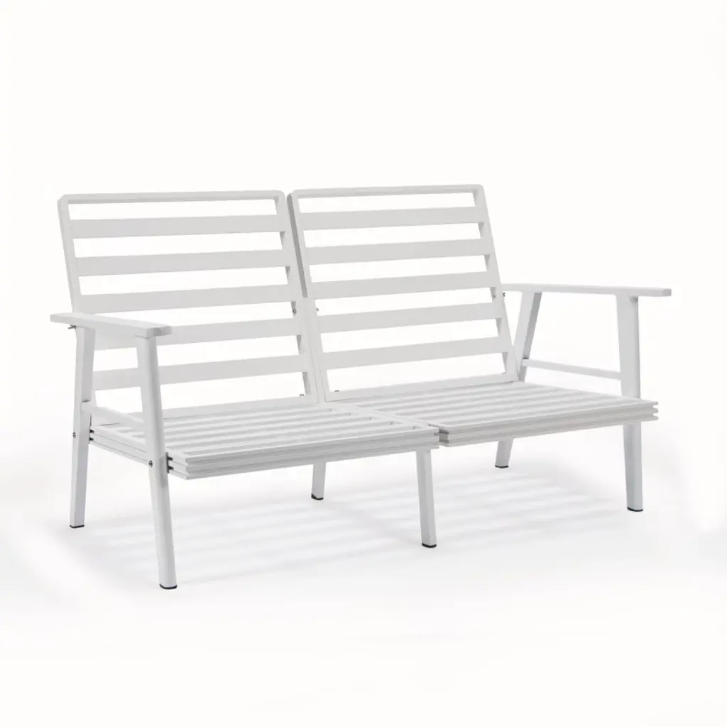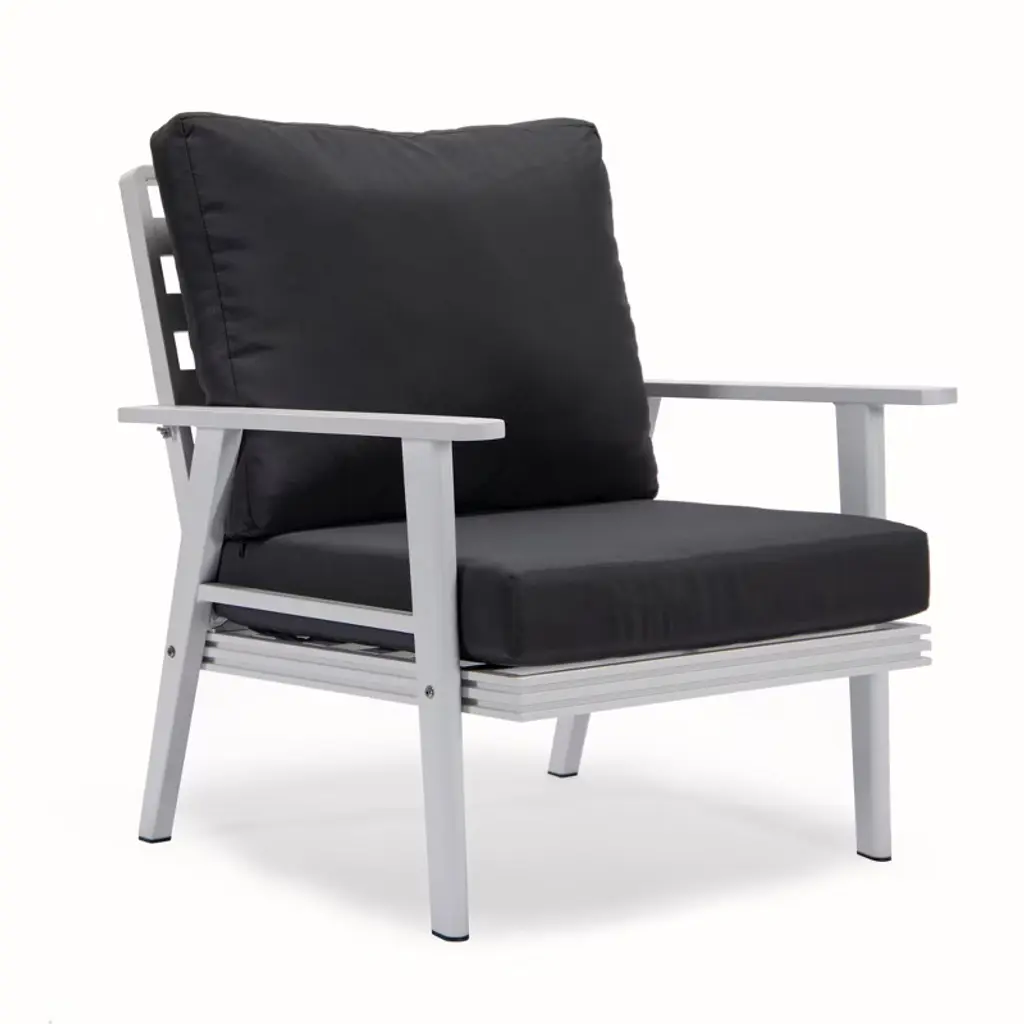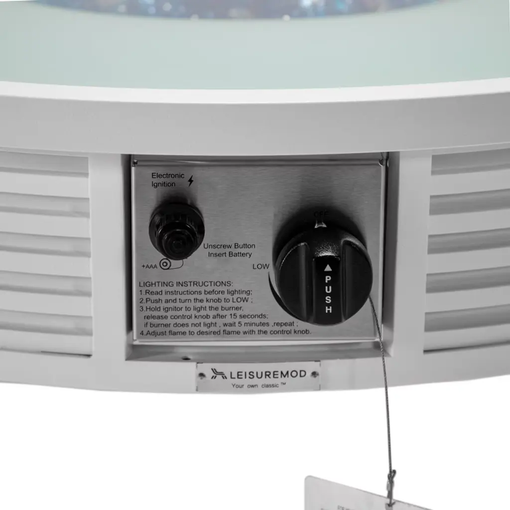 Leisuremod Walbrooke 4-piece Outdoor Patio Conversation Set – White Trim Fire Pit Table With Cushioned Ottoman For Patio, Deck, Balcony & Backyard