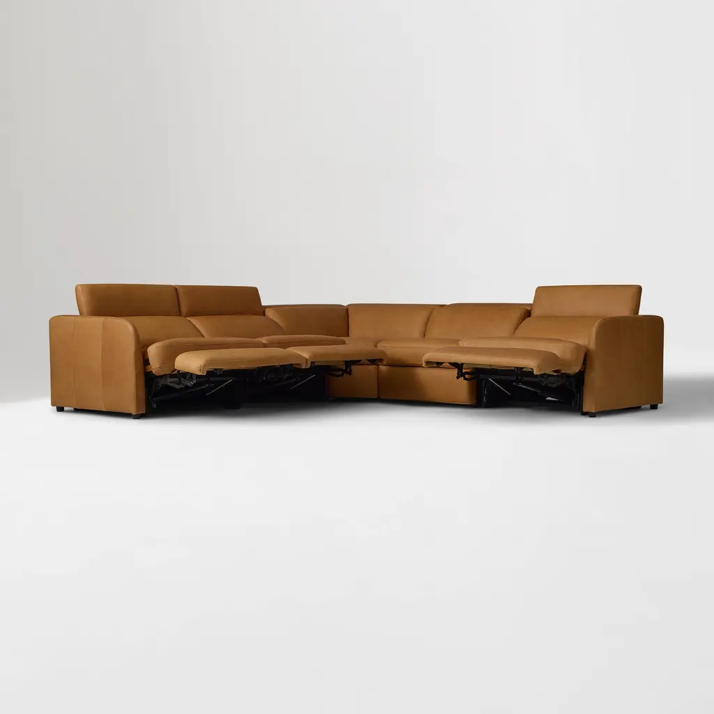 Leroy Motion Reclining Leather 5-Piece L-Shaped Sectional (113")