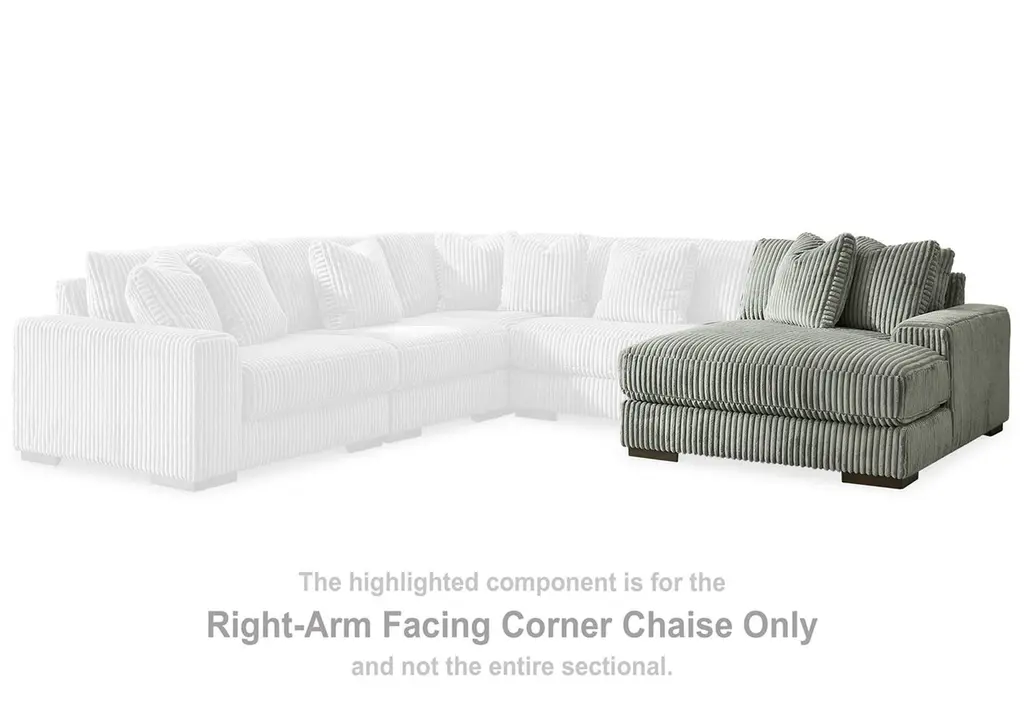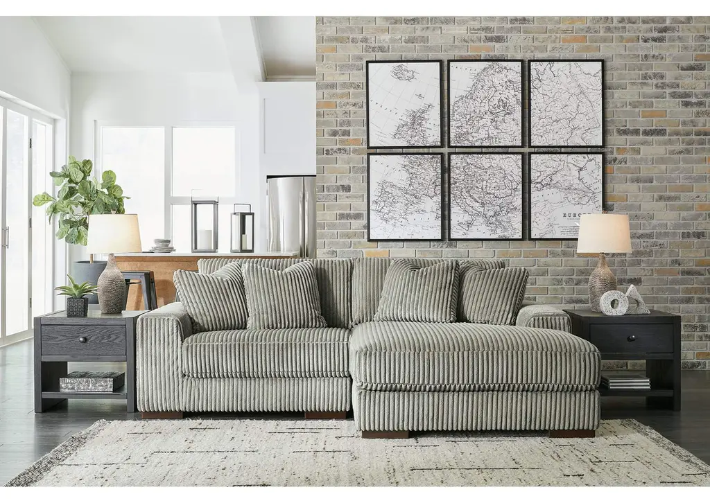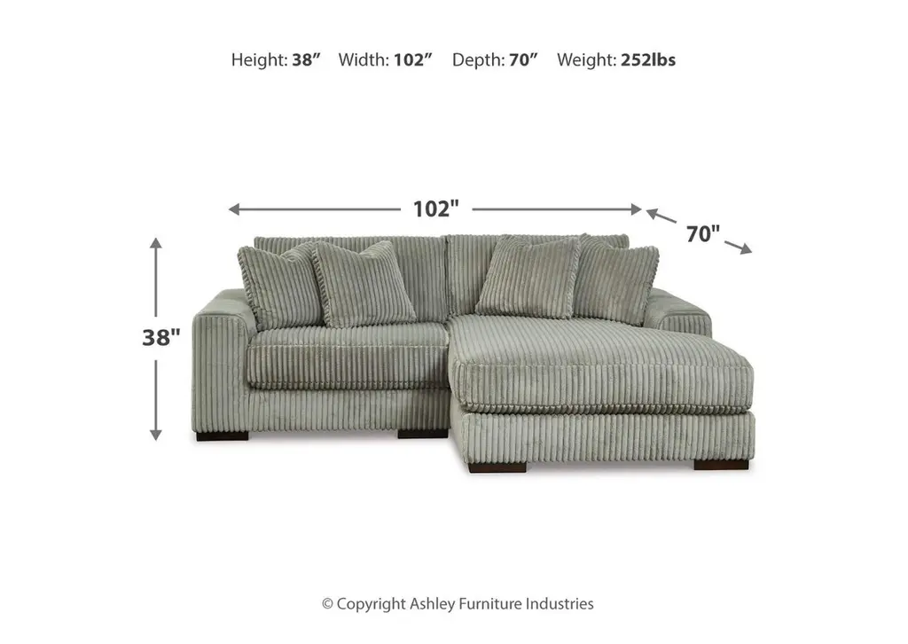 Plush and posh. Showcase your eye for on-trend texture with the statement-making cord upholstery of the Lindyn sectional with chaise. Its stunningly soft fabric entices in a warm neutral hue, complementing contemporary color palettes. Sink into the cushions and plan to stay a while—this cozy living room centerpiece highlights your high-end approach to comfort and style. Weight 252.000 lbs. (113.4kgs.)