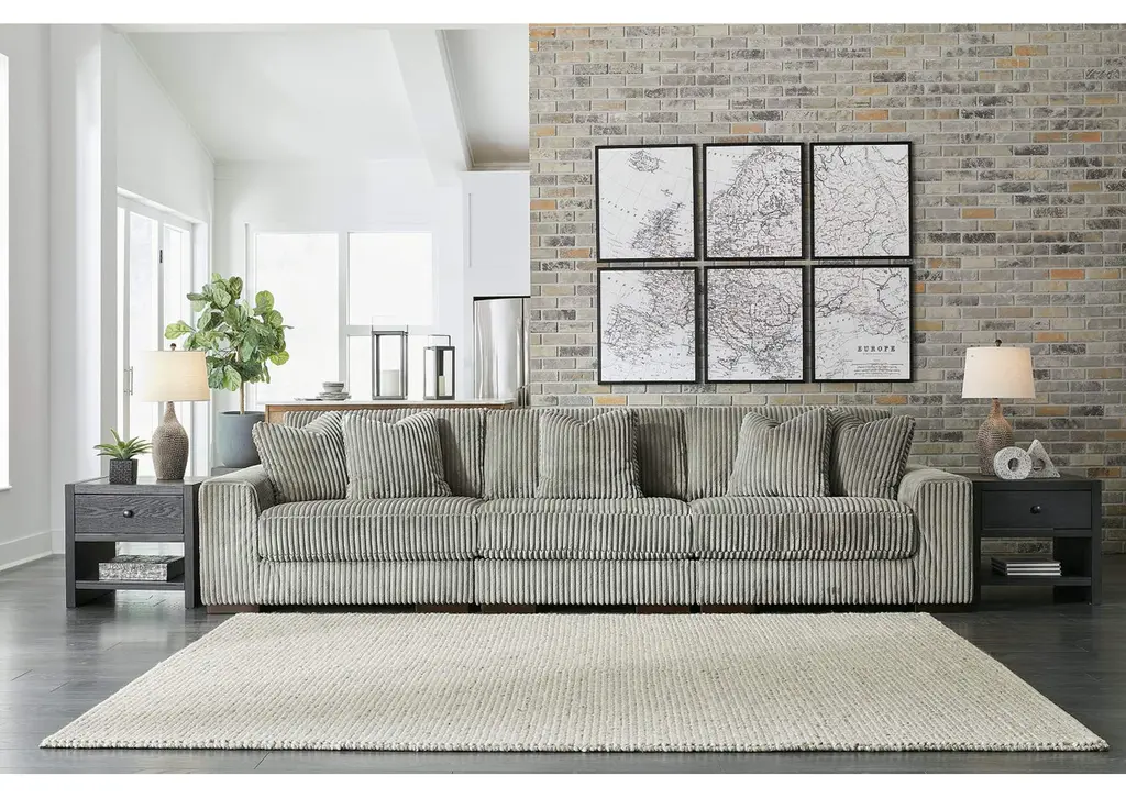 Plush and posh. Showcase your eye for on-trend texture with the statement-making cord upholstery of the Lindyn sectional sofa. Its stunningly soft fabric entices in a warm neutral hue, complementing contemporary color palettes. Sink into the cushions and plan to stay a while—this cozy living room centerpiece highlights your high-end approach to comfort and style. Weight 298.000 lbs. (134.1kgs.)