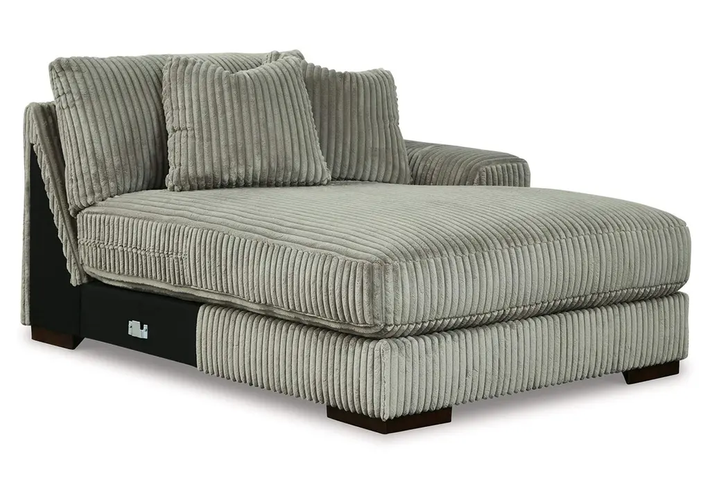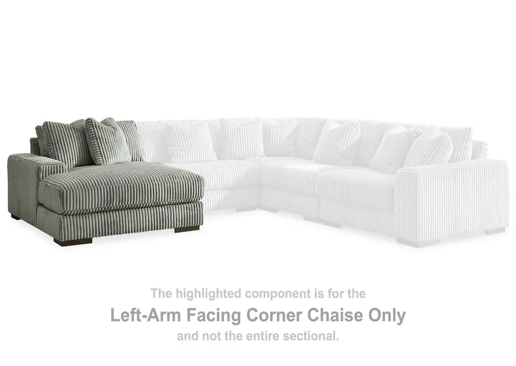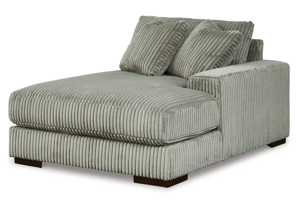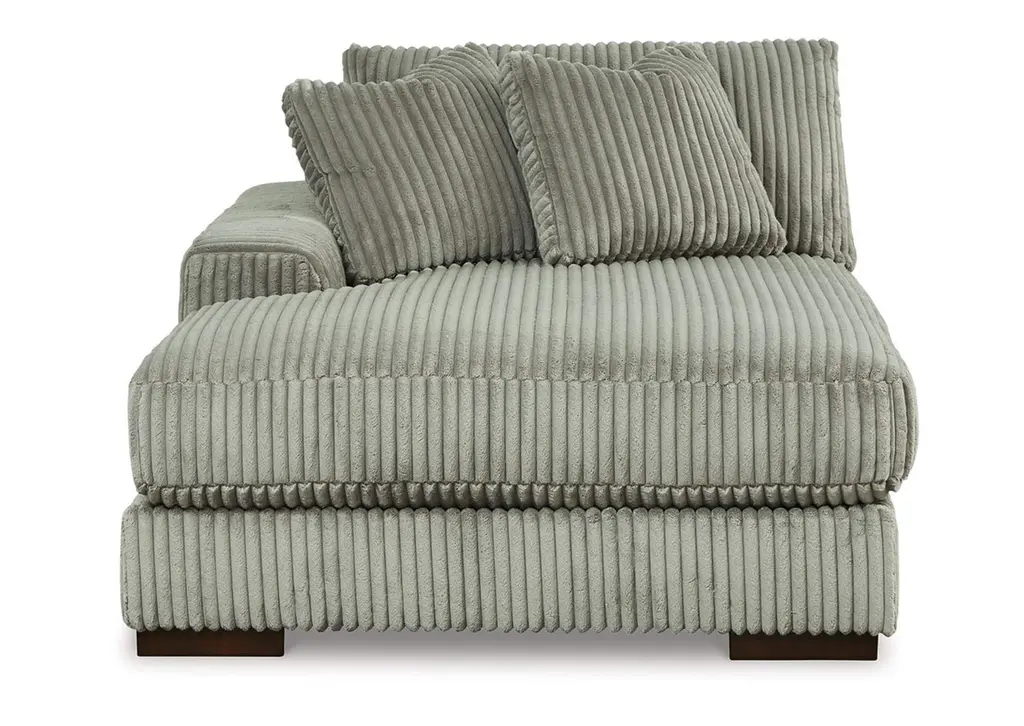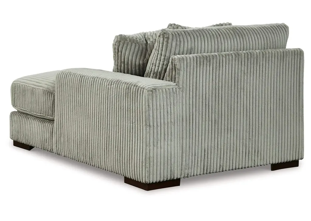 Plush and posh. Showcase your eye for on-trend texture with the statement-making cord upholstery of the Lindyn sectional with double chaise. Its stunningly soft fabric entices in a warm neutral hue, complementing contemporary color palettes. Sink into the cushions and plan to stay a while—this cozy living room centerpiece highlights your high-end approach to comfort and style. Weight 378.000 lbs. (170.1kgs.)