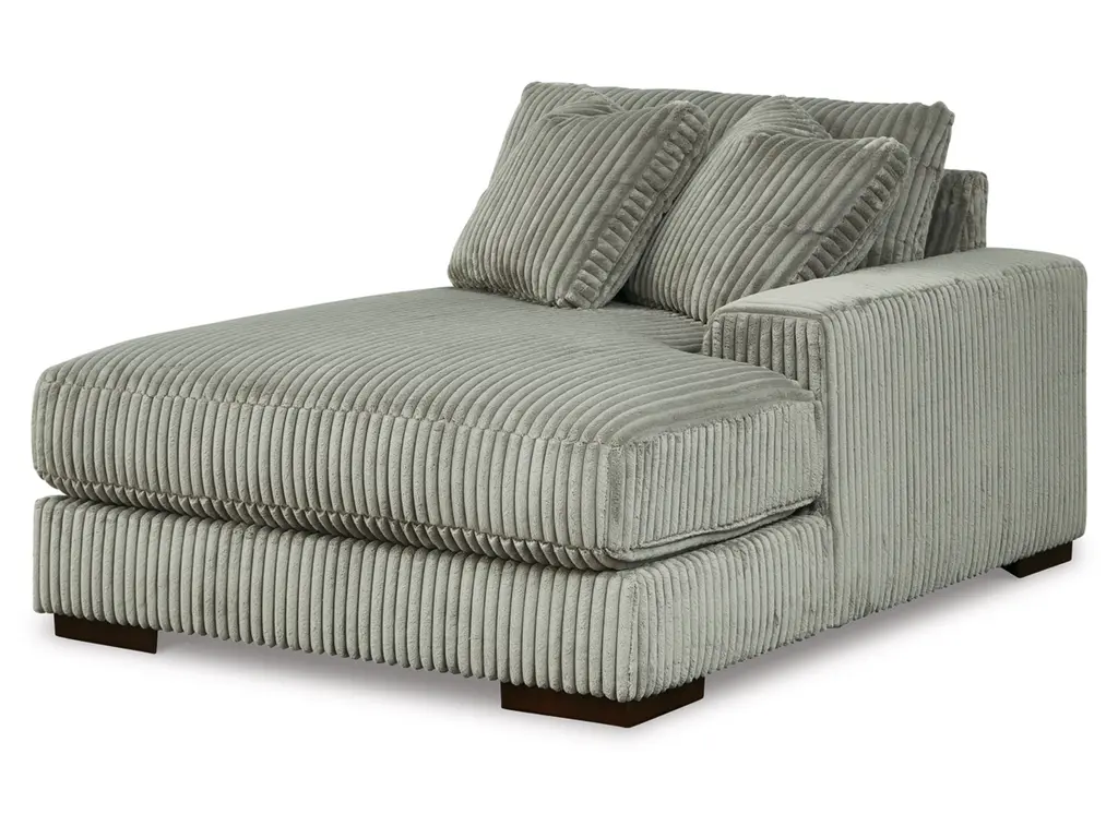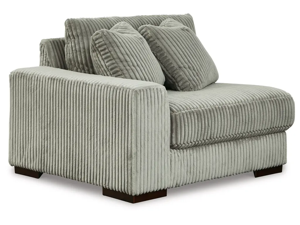 Plush and posh. Showcase your eye for on-trend texture with the statement-making cord upholstery of the Lindyn sectional with chaise. Its stunningly soft fabric entices in a warm neutral hue, complementing contemporary color palettes. Sink into the cushions and plan to stay a while—this cozy living room centerpiece highlights your high-end approach to comfort and style.
