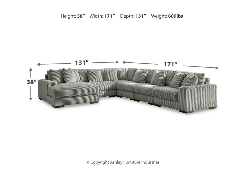 Plush and posh. Showcase your eye for on-trend texture with the statement-making cord upholstery of the Lindyn sectional with chaise. Its stunningly soft fabric entices in a warm neutral hue, complementing contemporary color palettes. Sink into the cushions and plan to stay a while—this cozy living room centerpiece highlights your high-end approach to comfort and style. Weight 609.000 lbs. (274.05kgs.)
