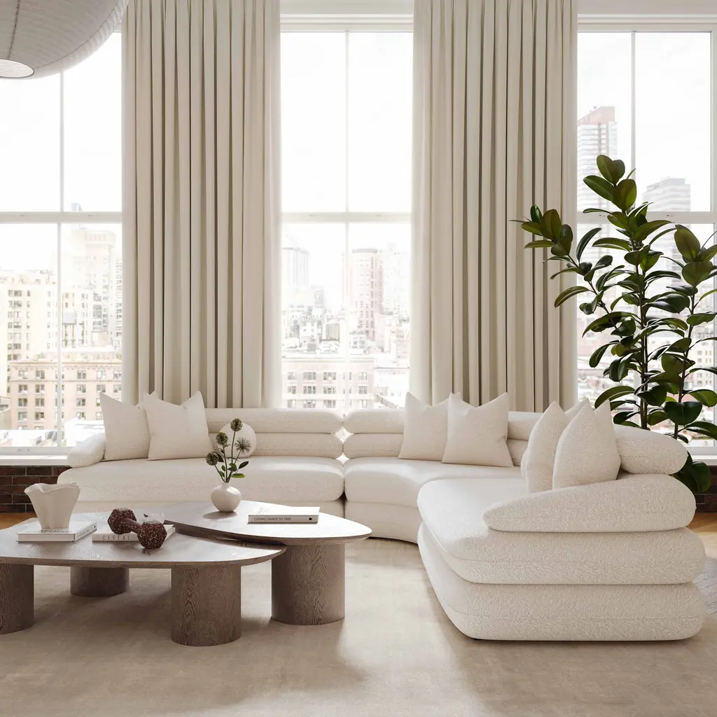 Lulu 3-Piece Cream Boucle Modular Curved L-Sectional