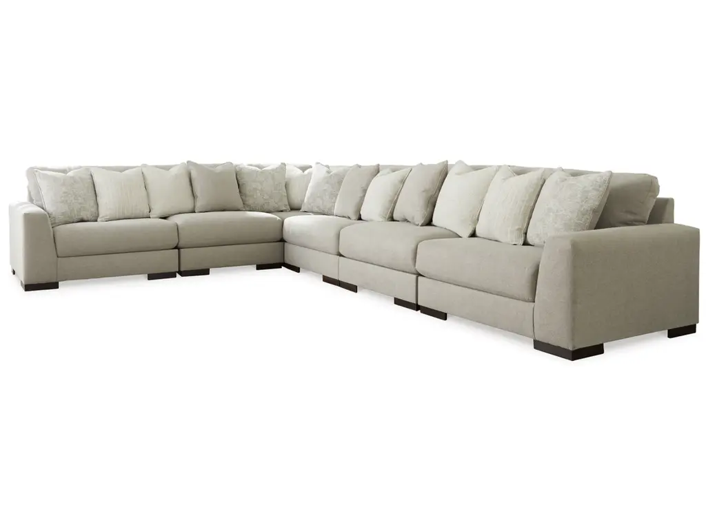 Distinguished yet unassuming, the versatile and visually appealing Lyndeboro sectional adds a refined touch to any space. Inspired by the dapper look of fine tailored menswear, its rich texture turns heads, while a soft, light gray hue blends effortlessly with other colors in the room. Clean lines and wide track arms embrace a minimalist contemporary style. The sectional's modular design offers a variety of configurations for flexibility. Plush, reversible deep cushions provide extraordinary comfort and can be rotated for longer life. Accent pillows in soft shades of complementary colors add subtle contrast. This handsome piece will make a memorable impression again and again.