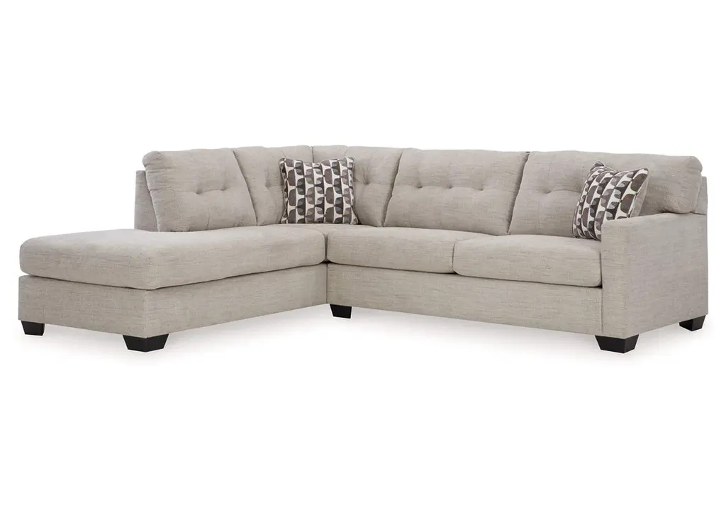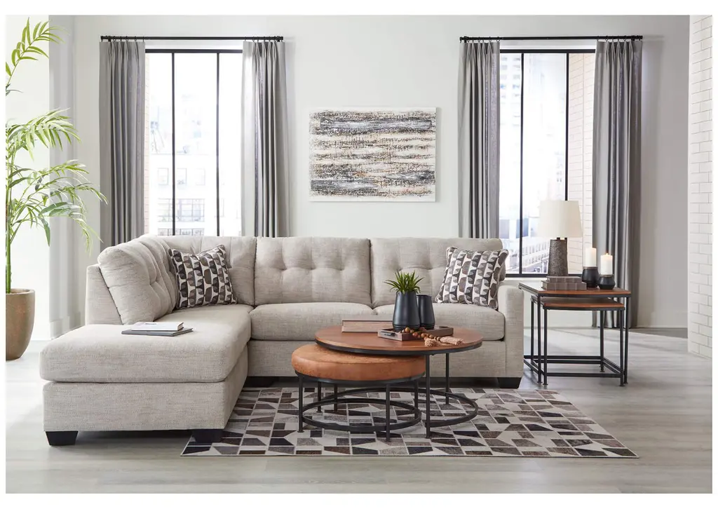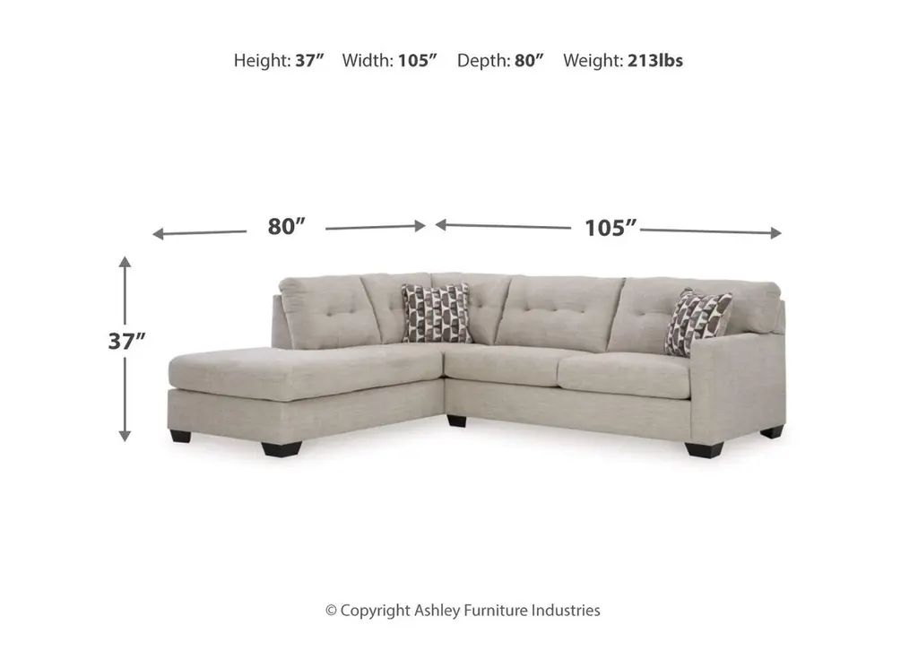 Reliable comfort, reimagined. Suitable for a variety of spaces, the Mahoney sectional with chaise invites you to say hello to approachable, everyday style. It expertly balances classic details, like a tufted back, with a contemporary structure. Satisfyingly soft, multi-hued upholstery rounds out the relaxed feel of this smartly designed piece. Weight 213.000 lbs. (95.85kgs.)