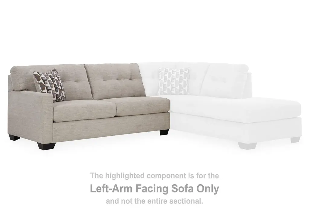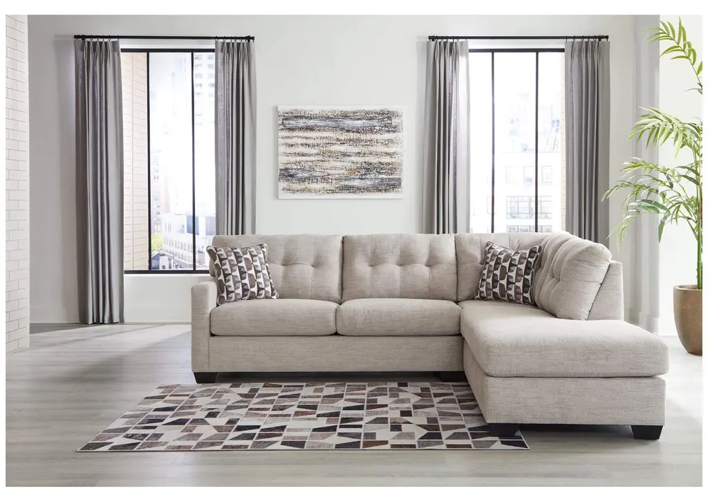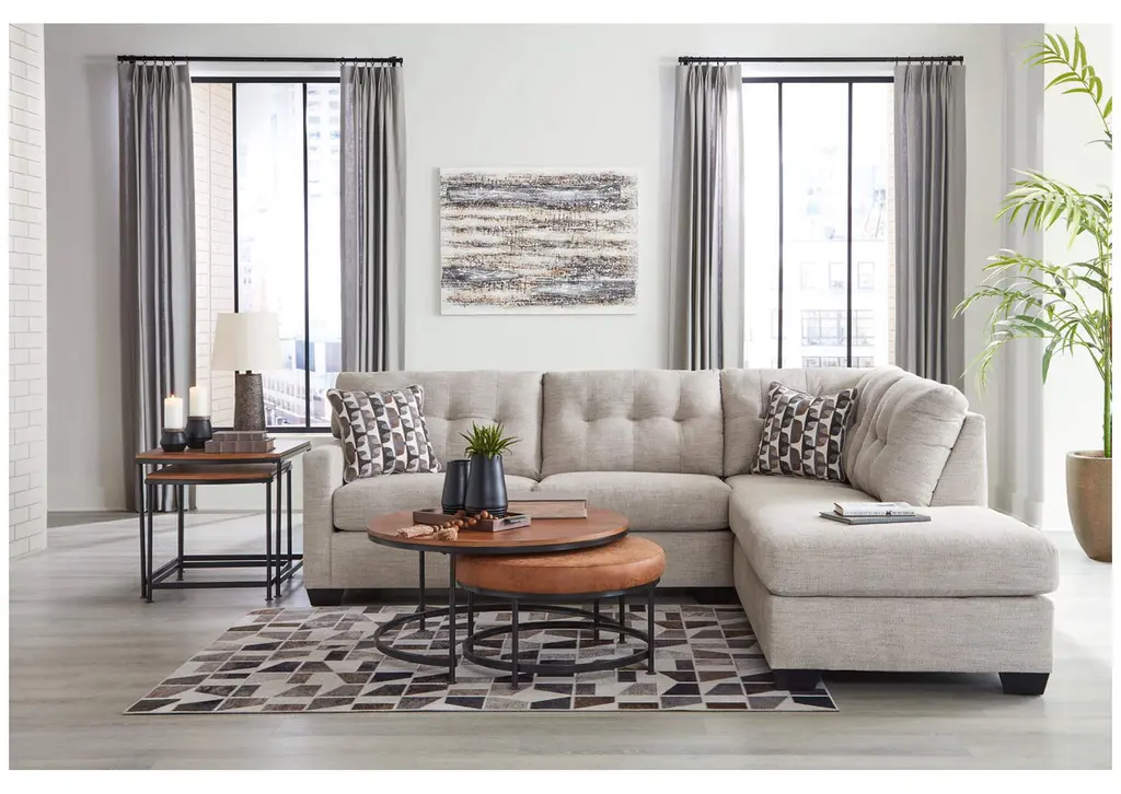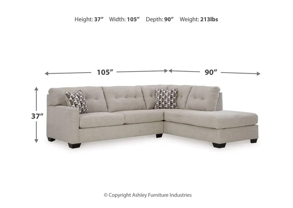Reliable comfort, reimagined. Suitable for a variety of spaces, the Mahoney sectional with chaise invites you to say hello to approachable, everyday style. It expertly balances classic details, like a tufted back, with a contemporary structure. Satisfyingly soft, multi-hued upholstery rounds out the relaxed feel of this smartly designed piece. Weight 213.000 lbs. (95.85kgs.)