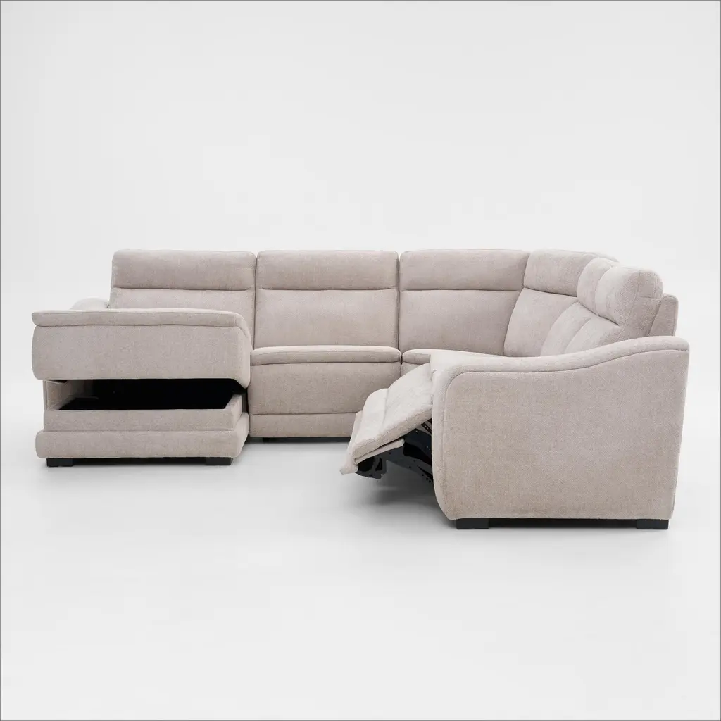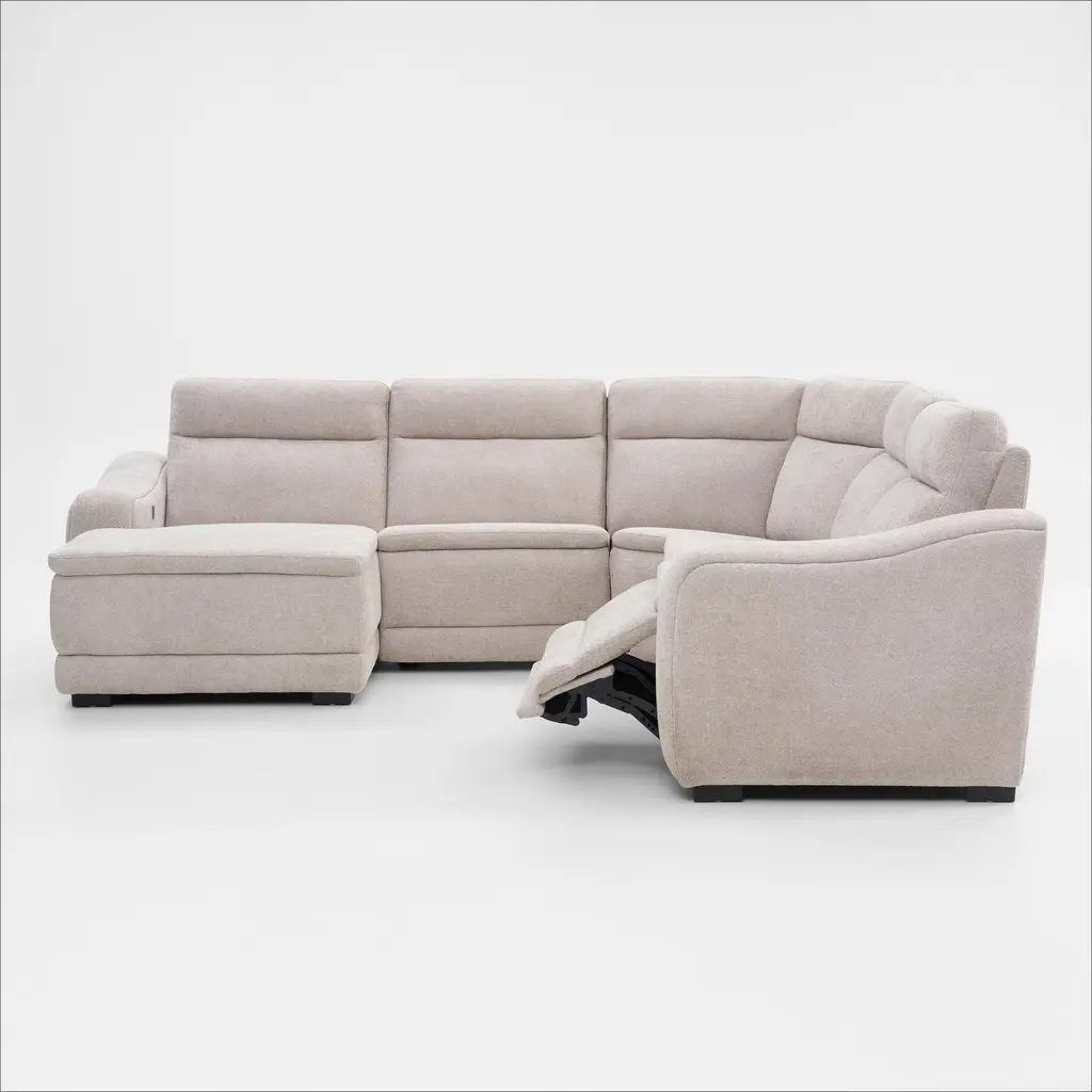 Majestic Dual-Power 5-Piece Reclining Sectional With Chaise - Stone