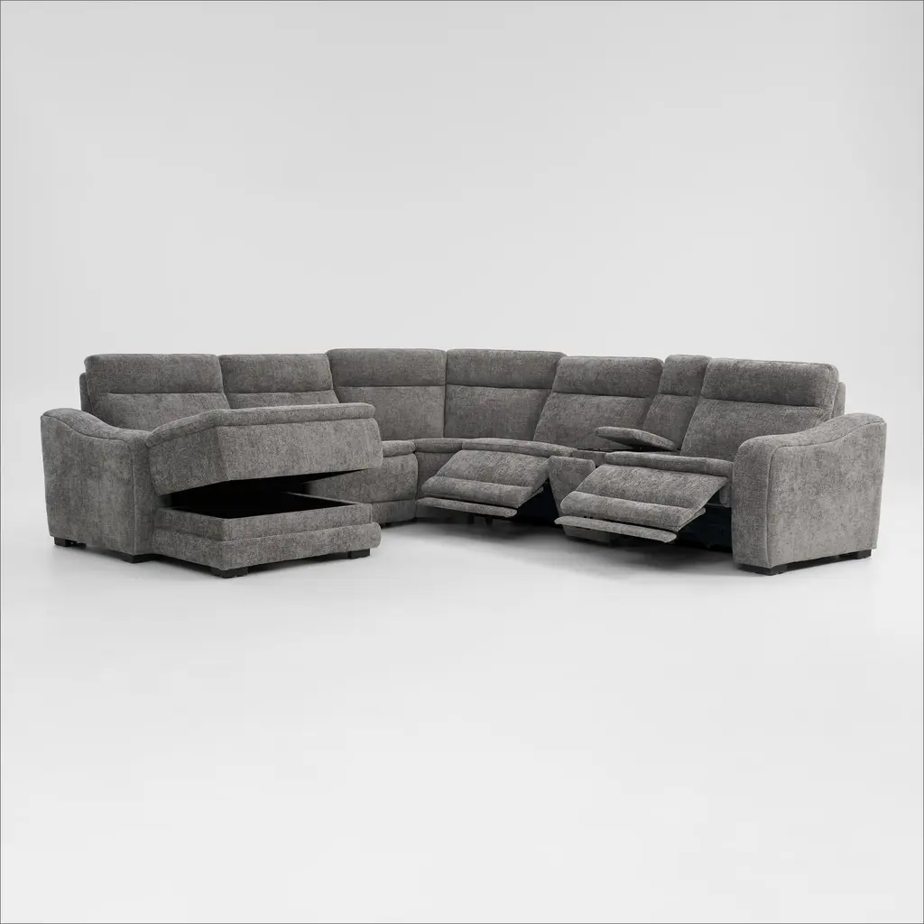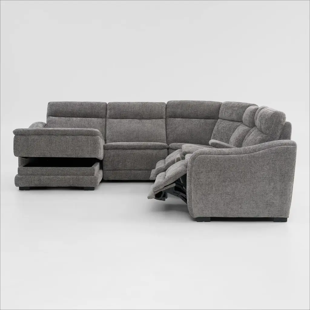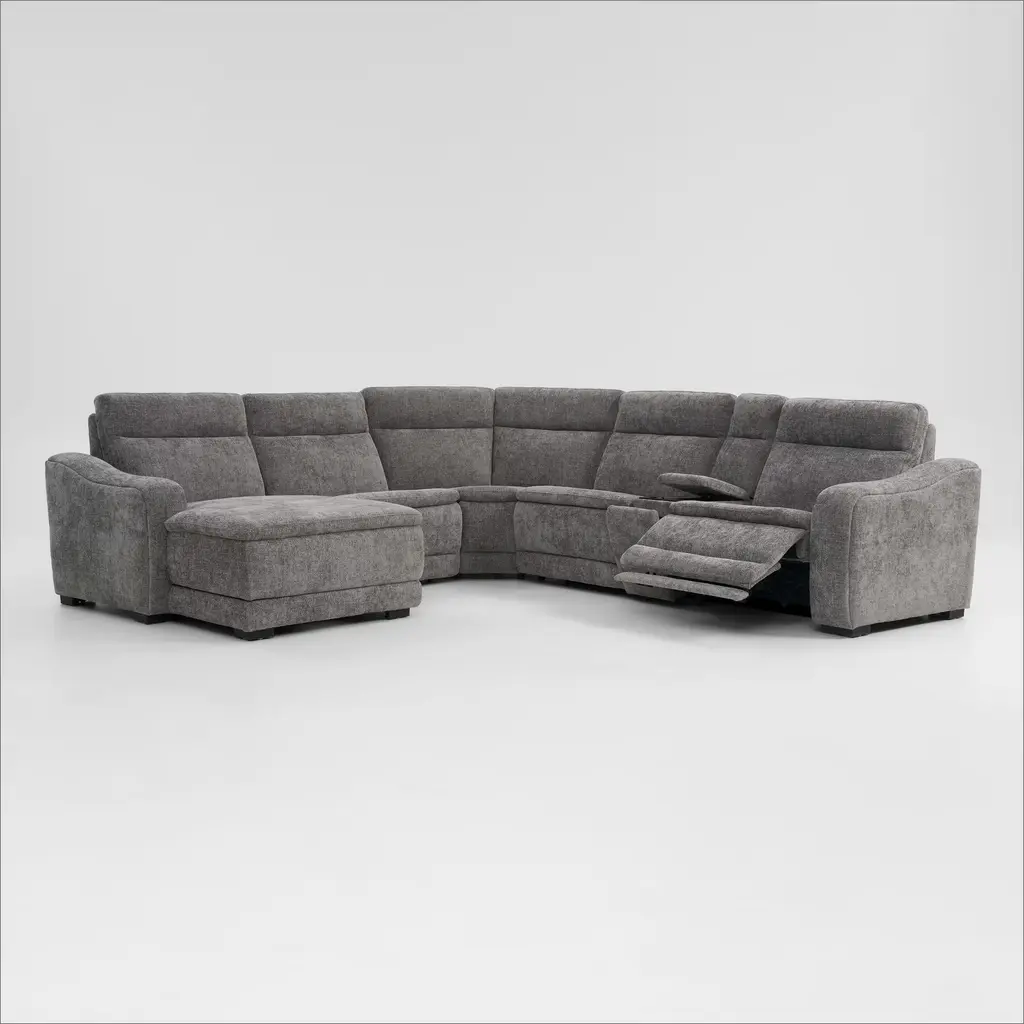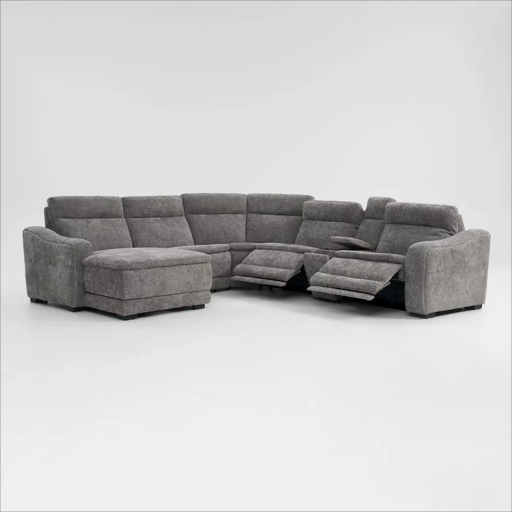 Majestic Dual-Power 6-Piece Reclining Sectional With Chaise And Console - Charcoal