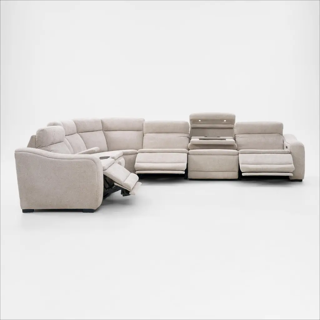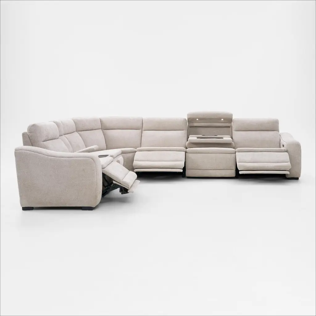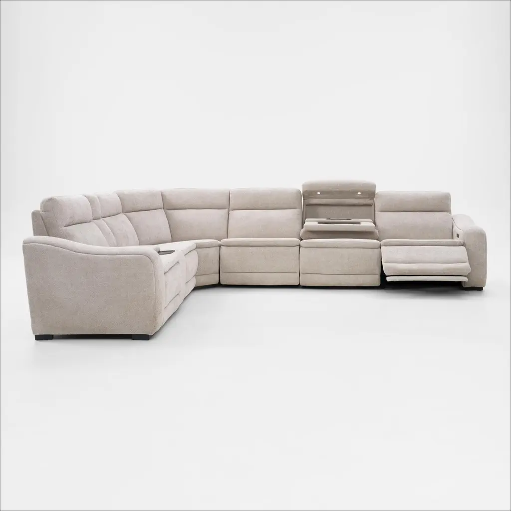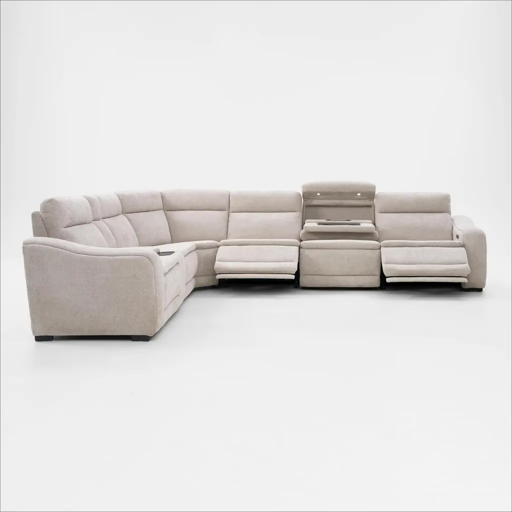 Majestic Dual-Power 7-Piece Reclining Sectional With Console And Drop-Down Table - Stone
