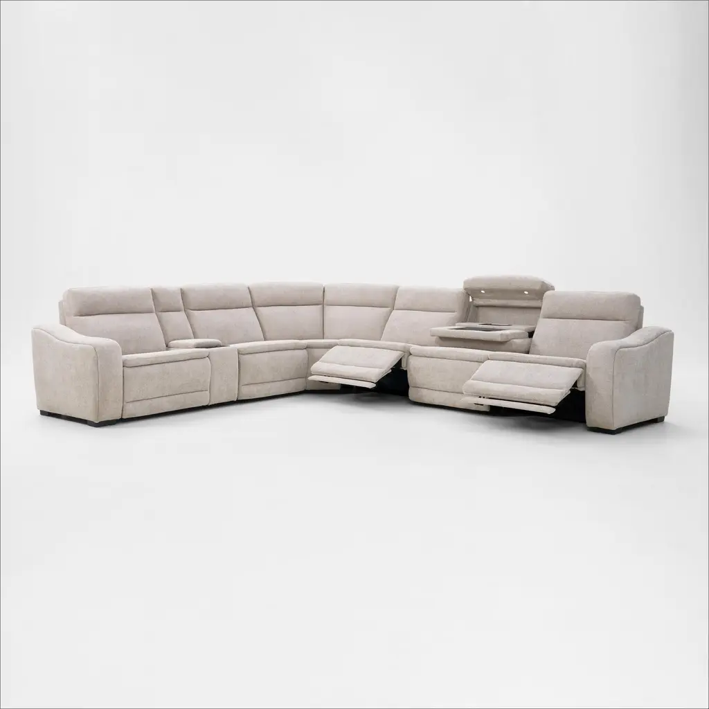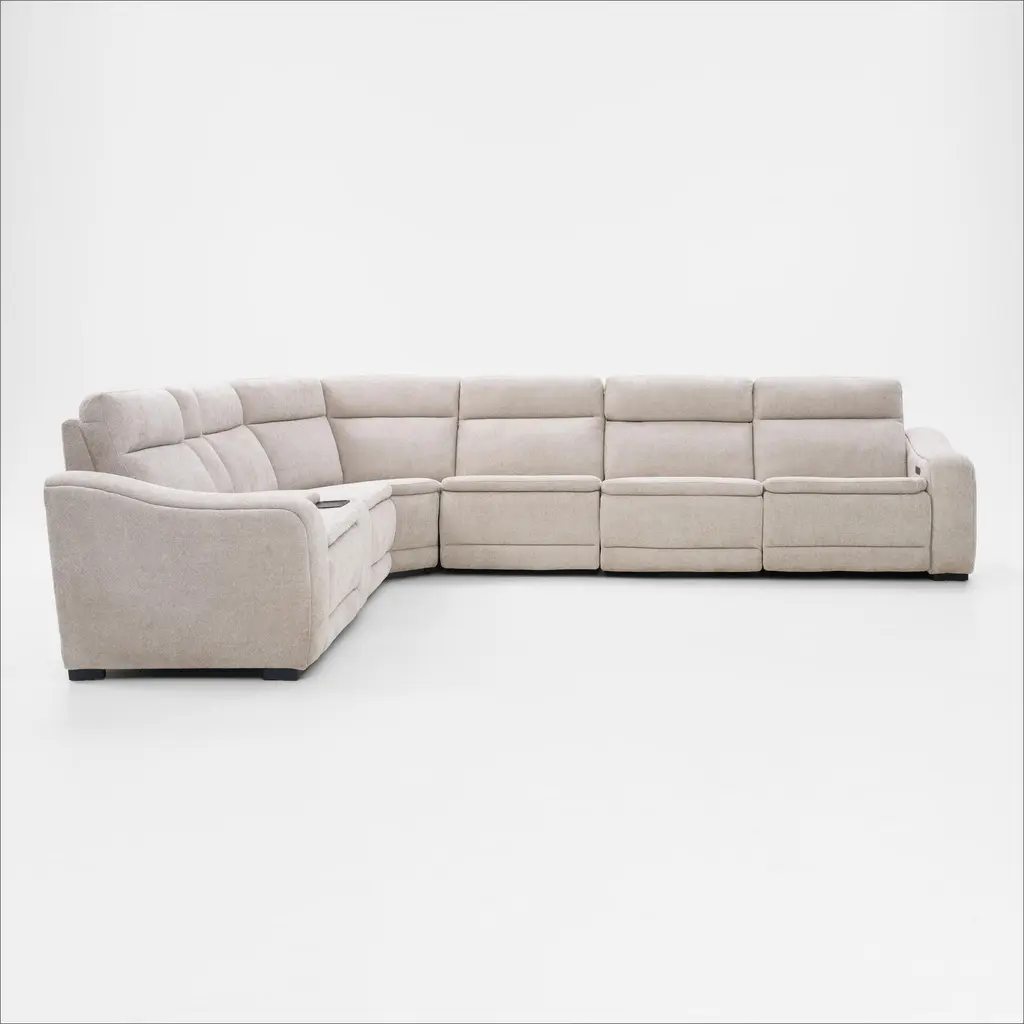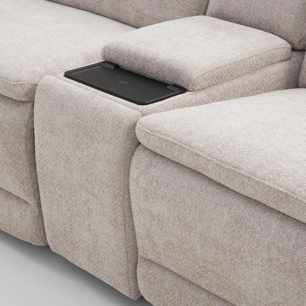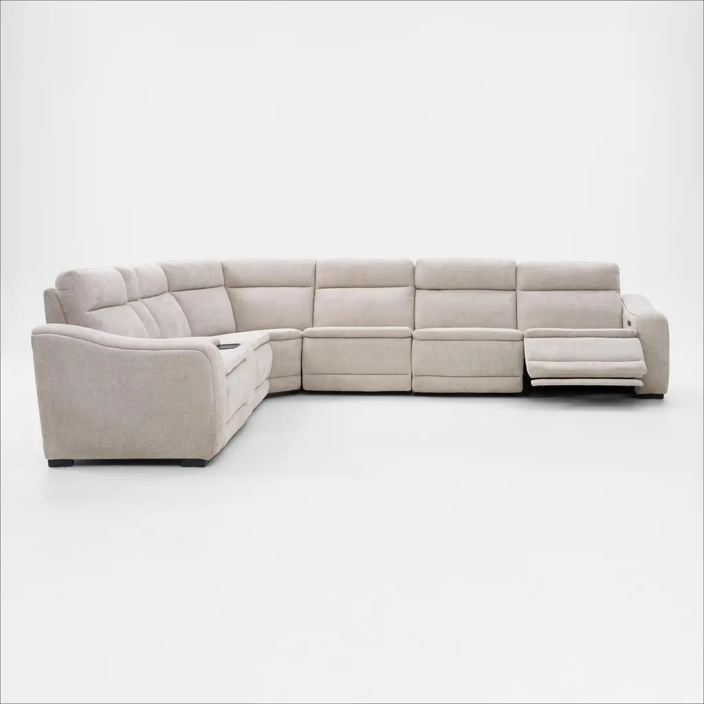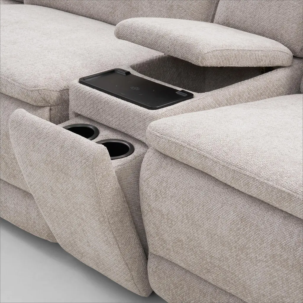 Majestic Dual-Power 7-Piece Reclining Sectional With Console And Drop-Down Table - Stone