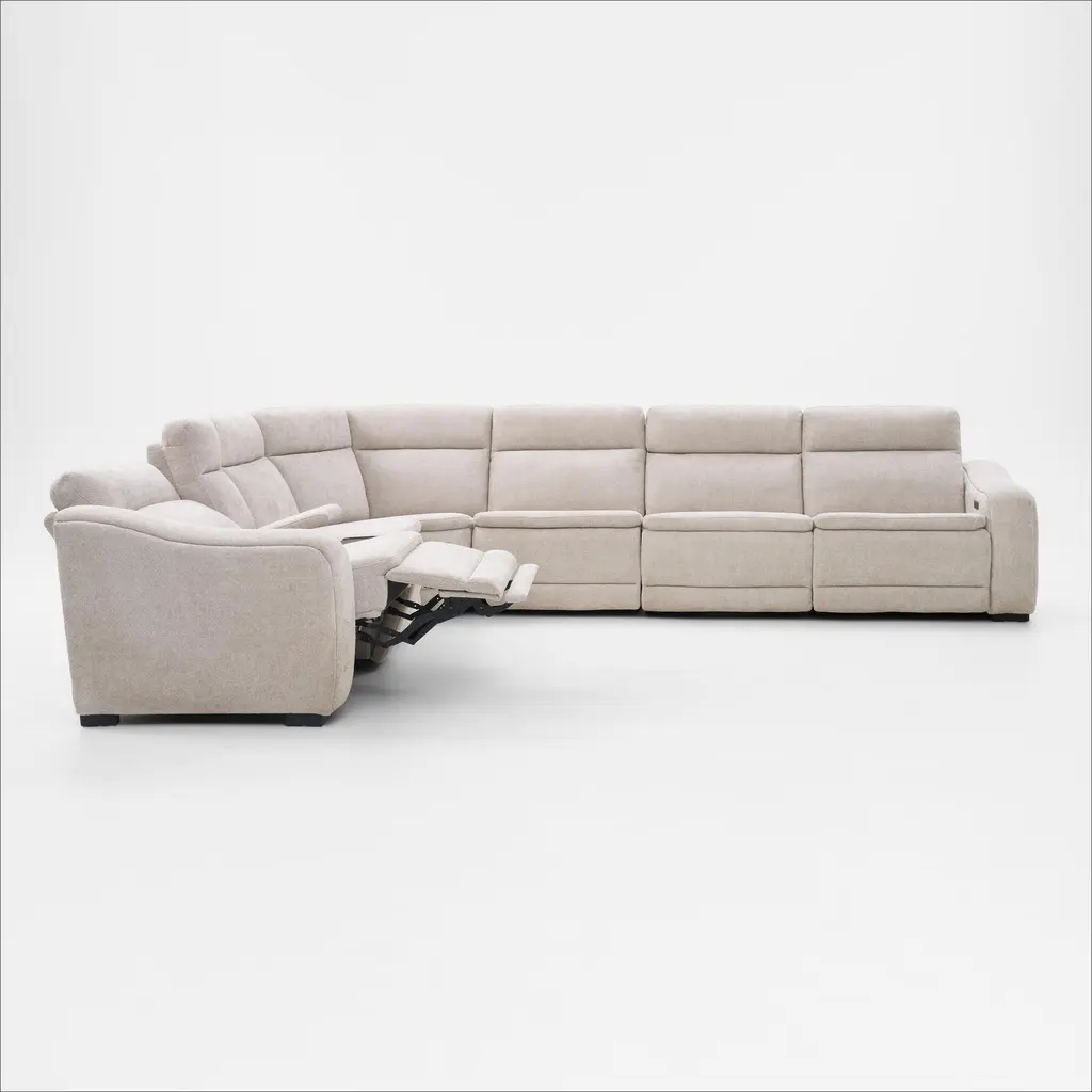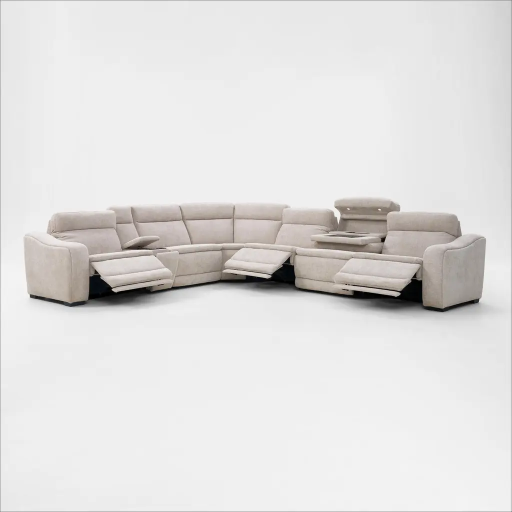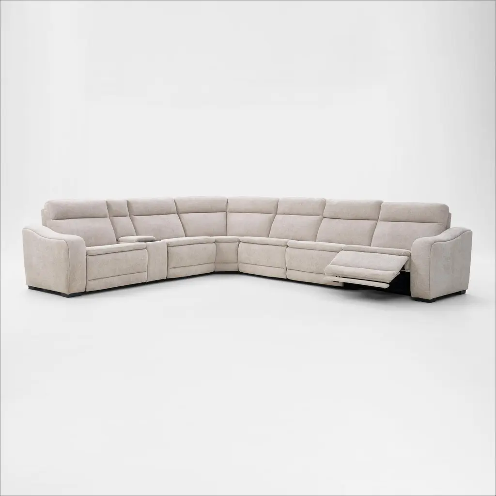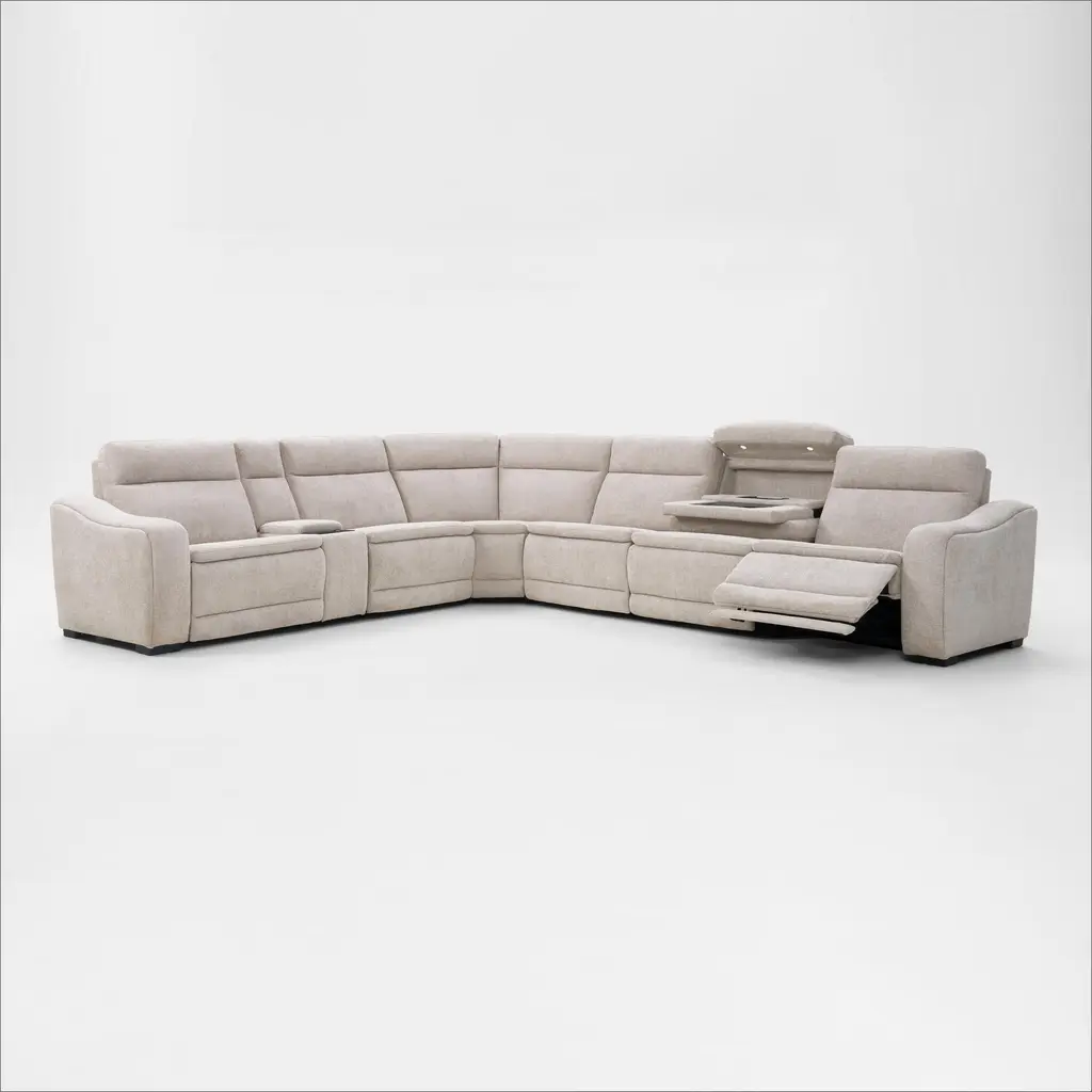 Majestic Dual-Power 7-Piece Reclining Sectional With Console And Drop-Down Table - Stone