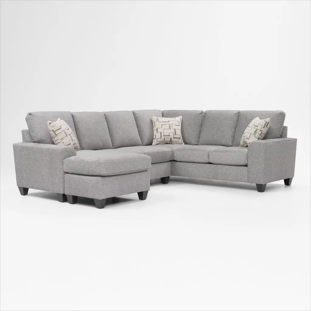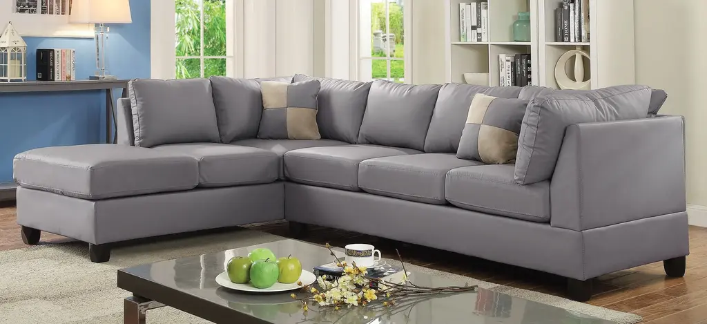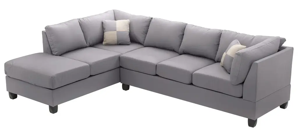 The casual and comfy Malone 2-pc. sectional sofa features an easy to care for faux leather cover that provides a soft feel thought. Also included are 2 coordinating throw pillows.