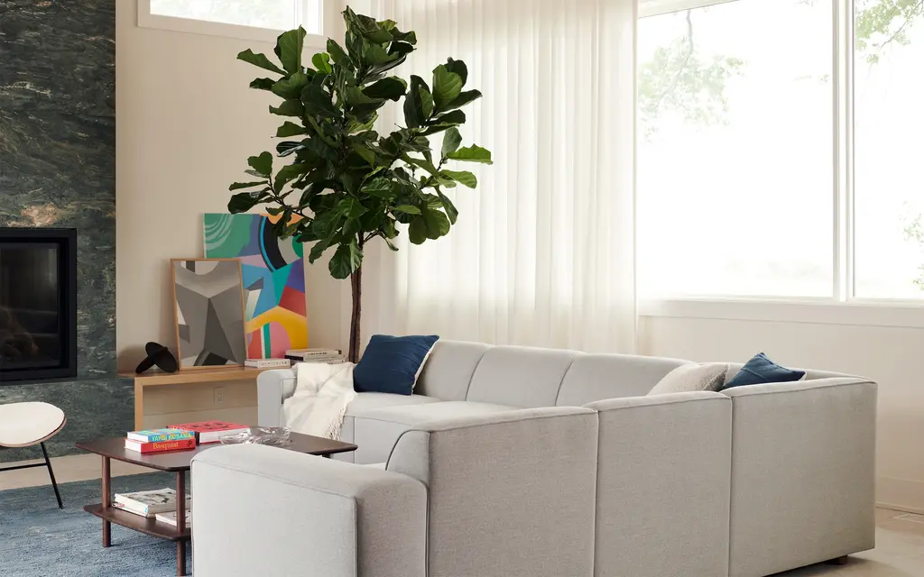 Ladies and gentleman, this is Mambo. A modern, modular couch that refuses to compromise between comfort, style, or convenience. Unlike other blocky contemporary sofas and sectionals — that are basically just foam blocks wrapped in fabric made for looking at and not sitting in — Mambo features graceful curves and soft cushions in all the right places. With high or low arm options, durable fabric or luxurious leather upholstery, and adaptable modular design, it's a canvas for your dream couch. | Burrow Mambo 7-Piece Sectional Sofa