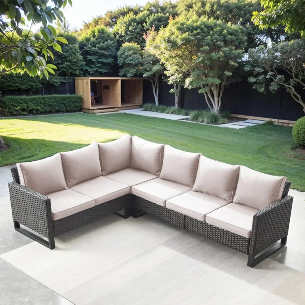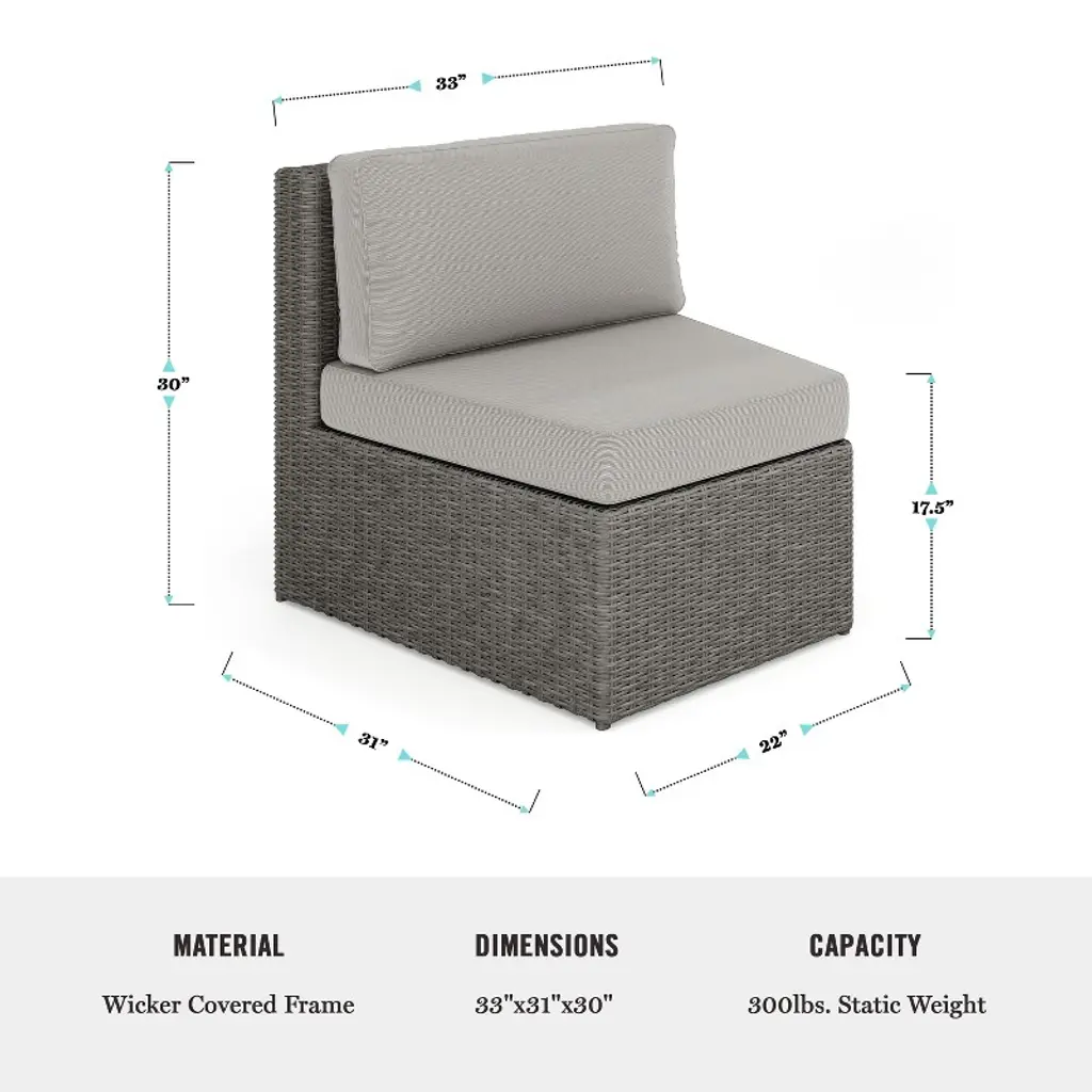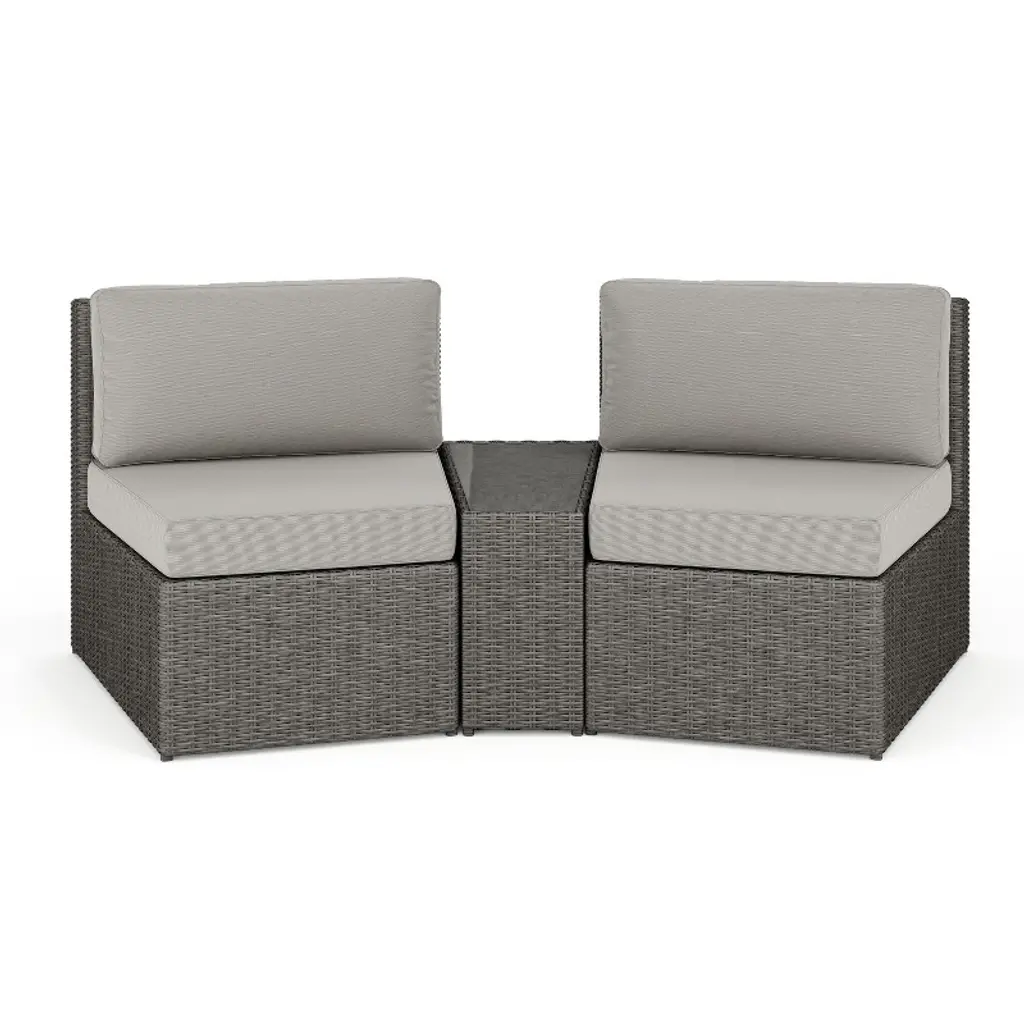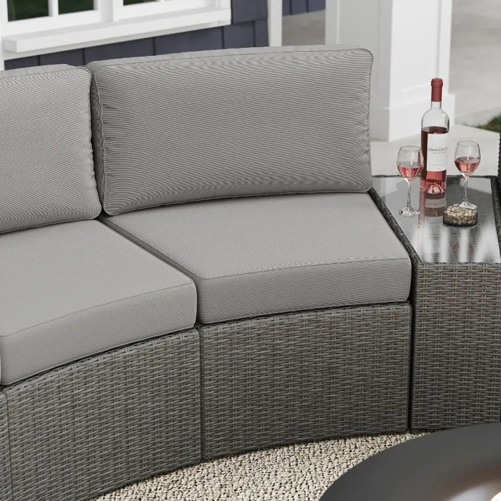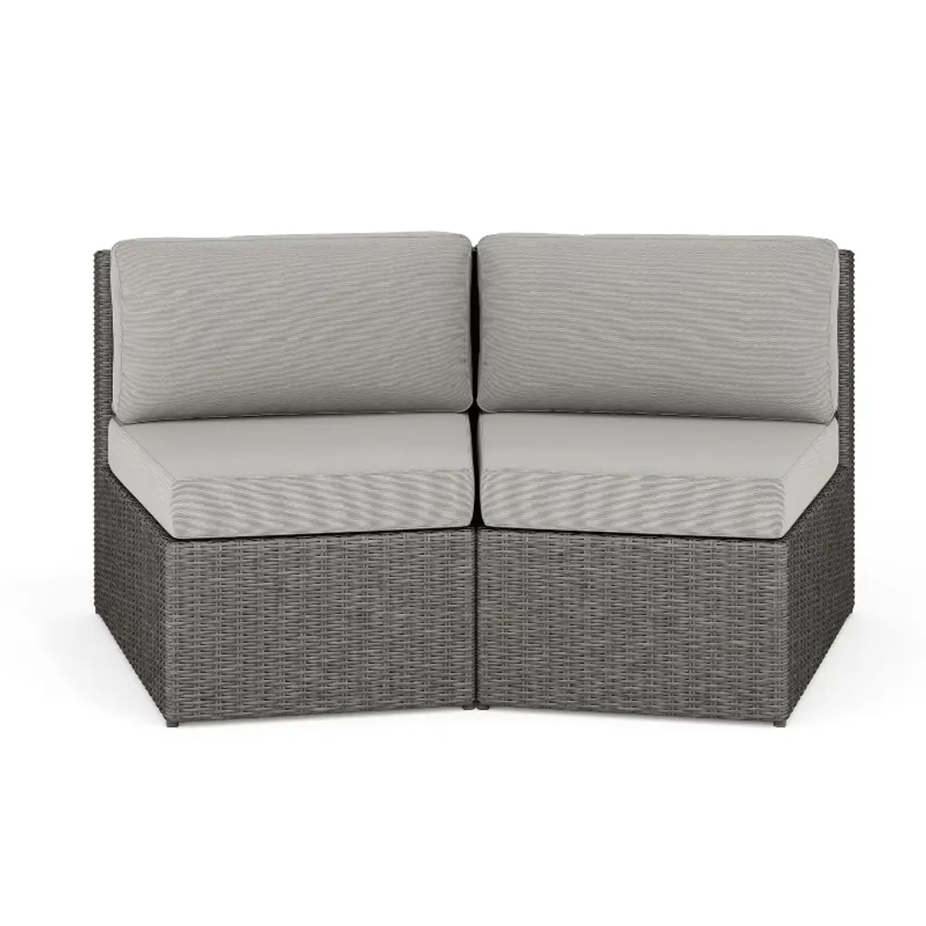 Refresh your patio space with the chic style and cozy comfort of this set of two Martha Stewart Bedford Modular Patio Curved Sectional Sofa Seats. Generously padded and sturdily built, these versatile patio seats are ideal for reading al fresco, enjoying cocktails with friends, or simply relaxing. Featuring 4.5” thick all-weather seat cushions and luxurious back cushions, these wicker seats will cradle you in comfort while you make the most of sunny days or starlit evenings. While suitable as a standalone set, you can purchase additional modular sectional pieces that secure easily with the included clips for a personalized configuration. Part of our Bedford collection, these seats pair wonderfully with the coordinating pieces allowing you to craft a custom collection that fits your indoor-outdoor needs. Setup consists of simply placing the cushions while upkeep is just as easy