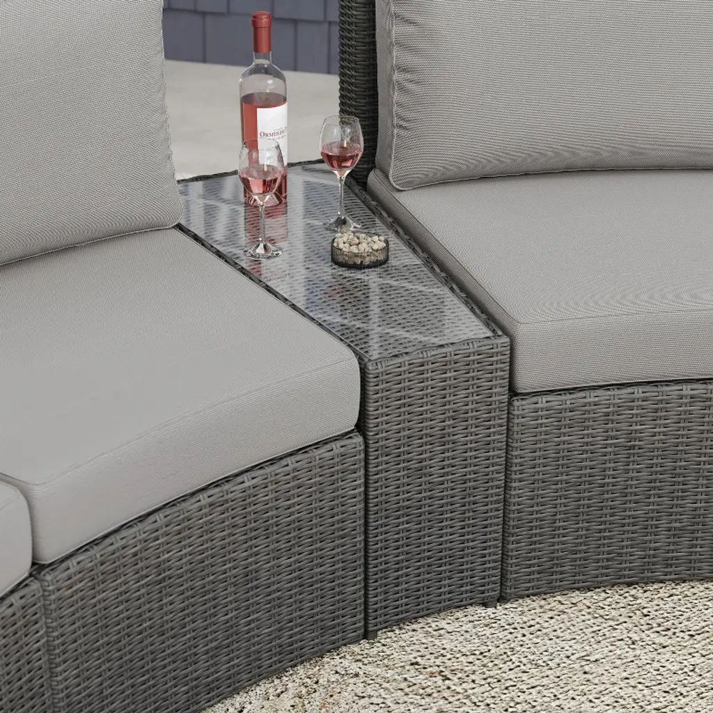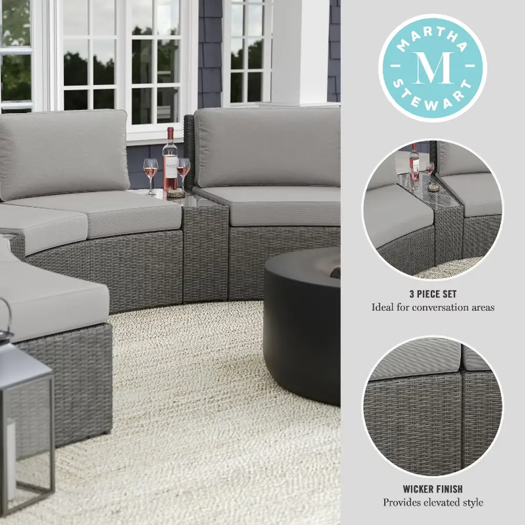 Martha Stewart Outdoor Modular Rattan Wicker Sectional Sofa Seats & Side Table - Gray/gray