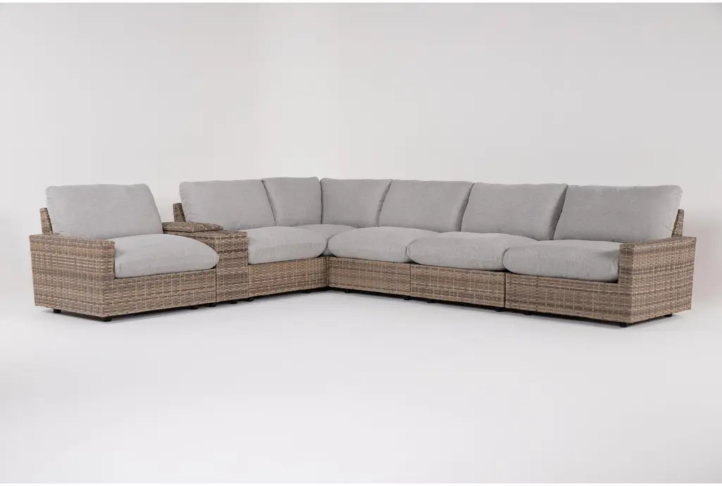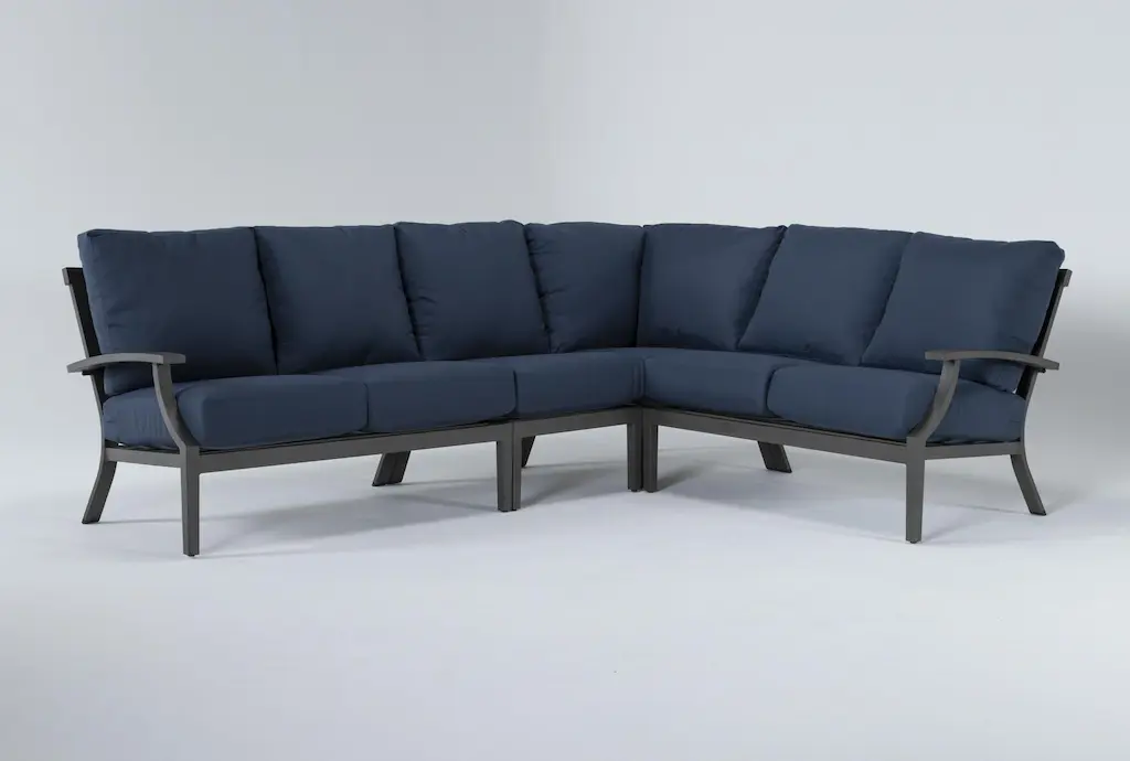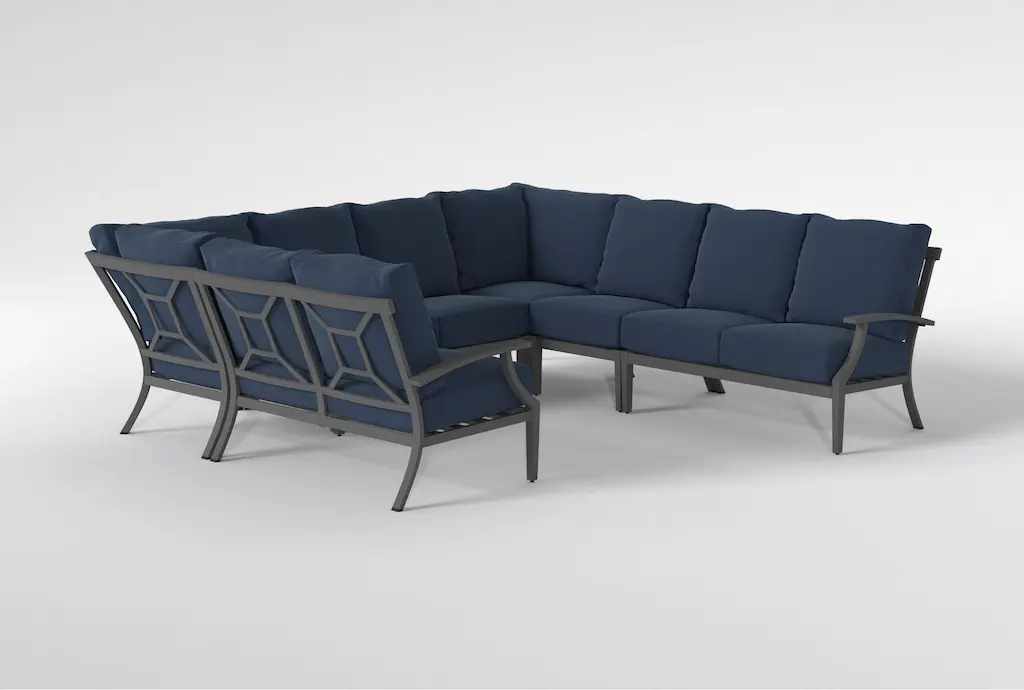 Enjoy the outdoors in comfort and style with the Martinique Navy Blue Outdoor 5 Piece Sectional. This deep-seated, armless sectional offers a relaxing retreat with its loose, reversible back cushions. Its handbrushed grey and navy color scheme adds a refined touch to any outdoor space.