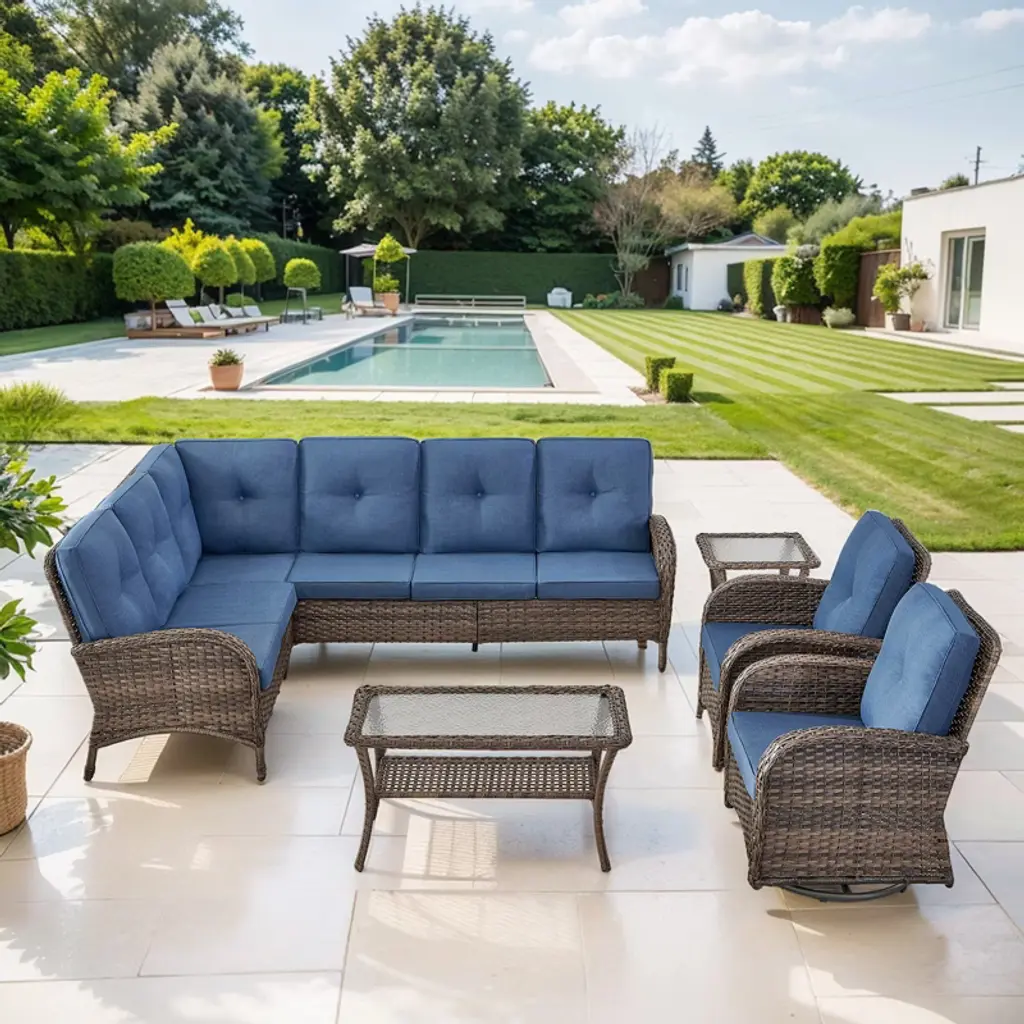 Martinique Navy Blue Outdoor 5 Piece Sectional | Fabric | Deep Seated | Armless | Loose Reversible Back