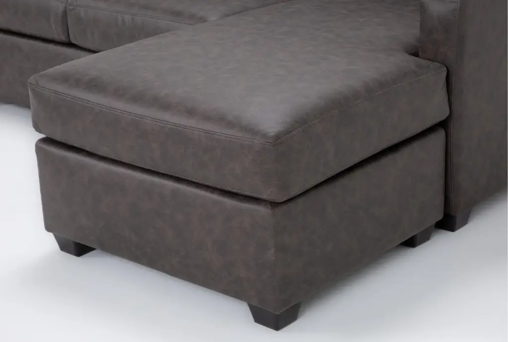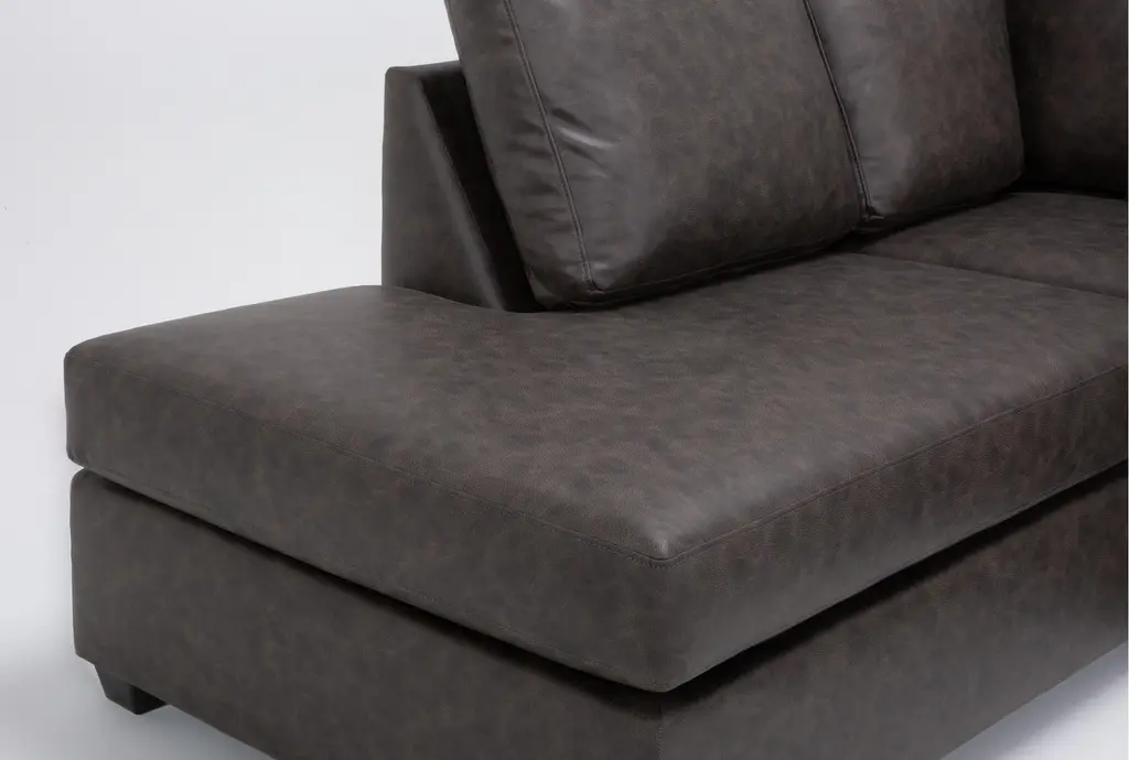 Mathers Grey Brown Vegan Faux Leather 2 Piece Sectional With Right Arm Facing Sofa Chaise + Left Arm Facing Corner Chaise
