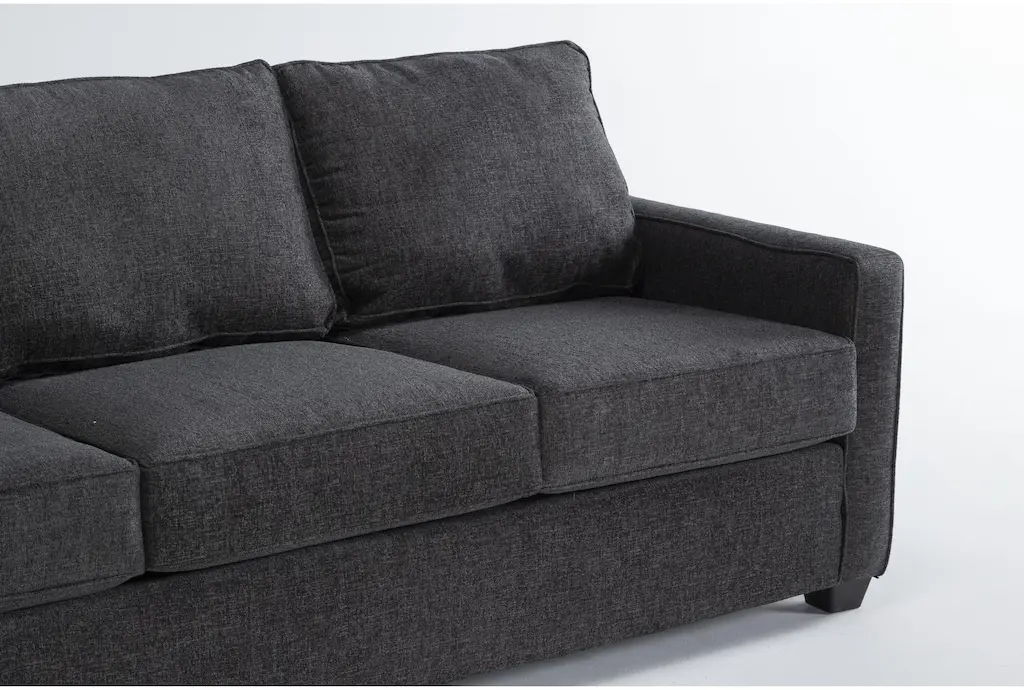 The Mathers Slate Grey Fabric 125" 2 Piece L-Shaped Sectional with Left Arm Facing Corner Chaise & Storage Ottoman is a stylish and functional addition to any living room. Its modern design and charcoal color make it a versatile piece that can complement various decor styles. The sectional is upholstered in 100% polyester fabric, ensuring durability and comfort.