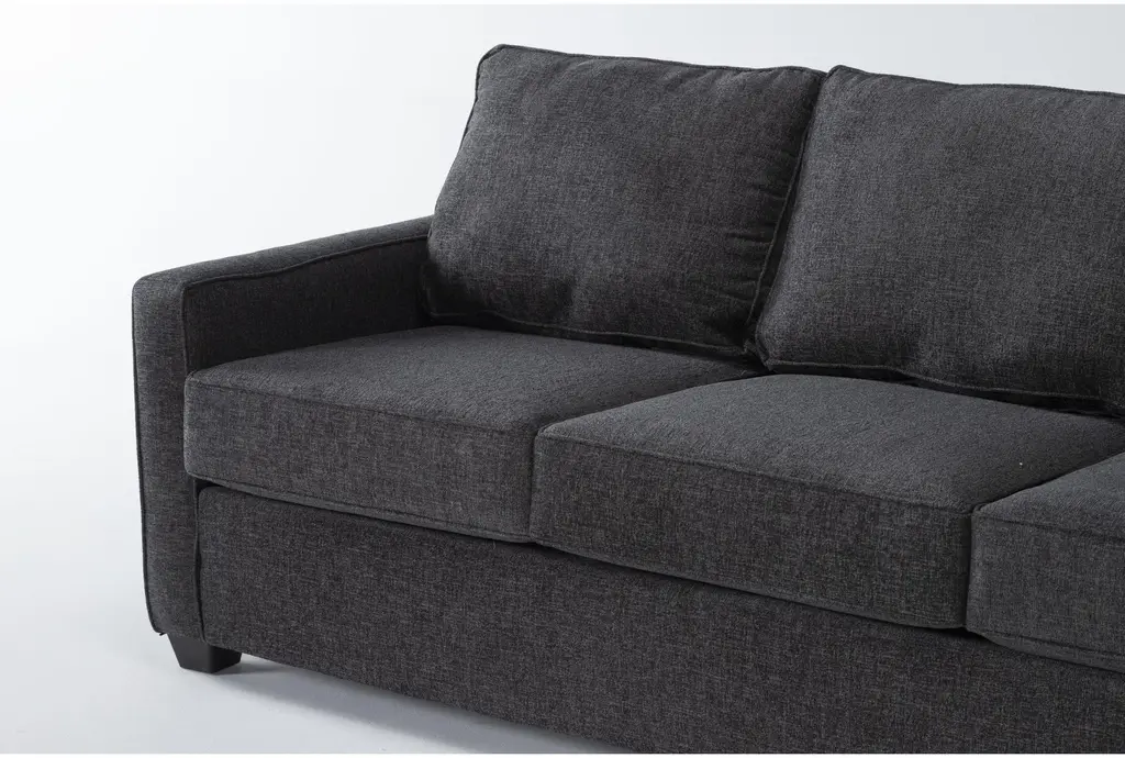 The Mathers Slate Grey Fabric 125" 2 Piece L-Shaped Sectional with Right Arm Facing Corner Chaise combines modern style with unbeatable comfort. Upholstered in a charcoal polyester fabric, this sectional offers a sleek and versatile addition to any living space. The track arms and tapered legs add to its contemporary appeal, making it a perfect fit for a variety of room settings.