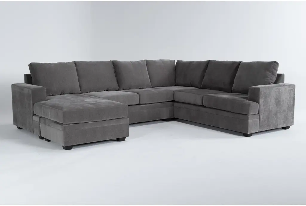 Mathers Slate Grey Fabric 125" 2 Piece U-Shaped Sectional With Right Arm Facing Queen Memory Foam Sleeper Sofa Bed Chaise & Left Arm Facing Corner Chaise